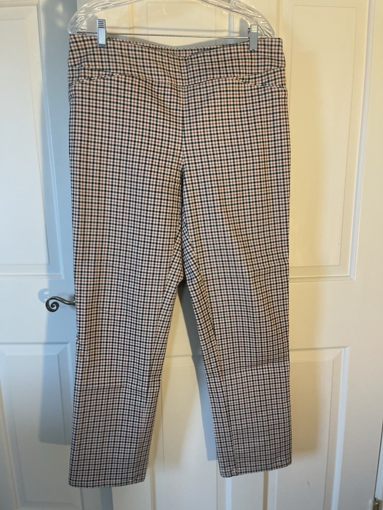 Croft & Barrow Womens Pants Size 14 Effortless Stretch Mid Rise Blk/Orange Plaid. Condition is Pre-owned - Excellent. Shipped with USPS Ground Advantage.