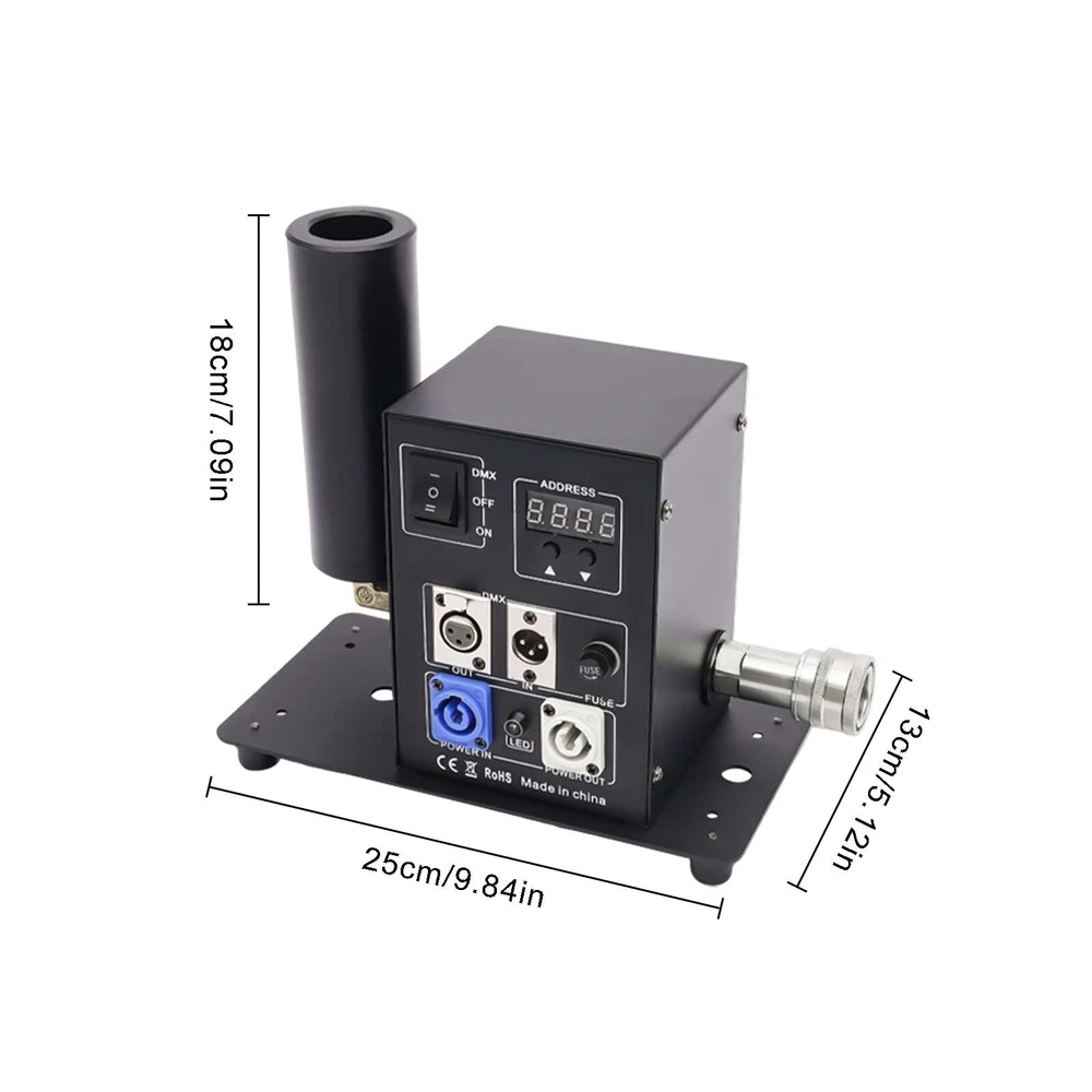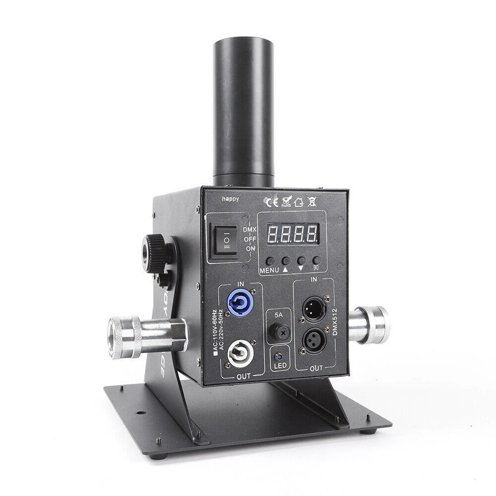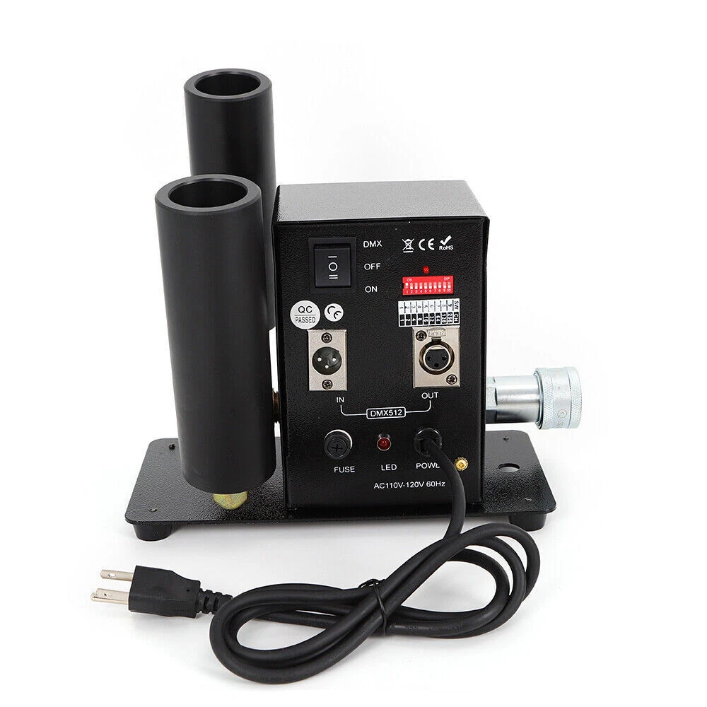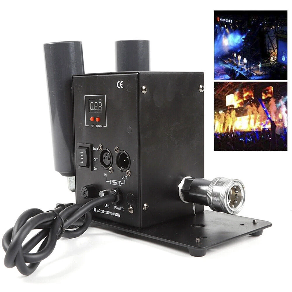 Cryo LED CO2 Jet Machine Fogger Smoke DMX DJ Disco Club Stage Show Effect ❤Welcome❤ NOTE:Before Placing a order ,please check the details you need.and then choose the right option to make the payment. this has 7 options to choose from,the functions Varies Differently Type 1:Single Tube, DMX Function , Angle Tilt Adjustable Technical features: Operation mode: 2 modes, DMX and Power on/off DMX channels: 2 channels (CH1-on/off, CH2-Length of ON) Linkable: Yes, via DMX cables Power: 150W Voltage: 110V 60HZ Co2 gas shot angle: adjustable 0-100 degree Shot height: about 8 meters Nozzle materials: ABS Hose length: 6meters This Package Includes: 1x Co2 Machine 1x Power Cord 1x DMX Cord 1x 6 Meter Hose Type 2:Double Tube,Digital Display ,DMX Function DMX Co2 jet machine Double Pipe for Stage Show Wedding Nightclub Bars Co2 gas tank is Excluded Magic Effect Co2 jet DMX machine remains industry standard when referring to mounted Co2 jets. Its simple design and ease of use allows for both DMX and Standard power on/off capabilities. This is by far the most versatile and most sought after unit on the market. From clubs to concerts, private parties to festivals, the Magic Effect Co2 jet DMX will get the job done. Magic Effect Co2 jet DMX machine, one of Magic Effect best selling products. When in DMX mode, can be controlled by a DMX 512 controller utilizing 2 channels, 1 channels of DMX for on/off control and the 2nd channel of DMX for the length of “ON” before the jet automatically shuts off. While in standard mode, this co2 jet machine can be controlled by any on/off switch to the power supply feeding power to the unit. Example: power strip on/off button being used to turn the Magic Effect co2 jet on/off when jet is plugged into the power strip and is in standard mode). Magic Effect co2 DMX jet machine is lightweight and has capabilities to be linked to other units for simultaneous control of multiple jets by connectors and pipes. This co2 jet machine comes in AC110V with ability to be installed on truss or used on floor. Built to withstand rugged conditions, the co2 DMX machine reaches heights of 25-35 feet (7.6-10.6 meter) and weight only 7.4lbs(3.4kg). With easy assembly, included manual and high pressure co2 hose, and quick set up time, you will be ready to use this co2 jet in minutes. Pending you already have co2. Compatible with both high and low pressure systems. 1 year manufacture warranty. Co2 gas tank is not included. The hose and co2 jet listed here have quick connected fitting already installed so you can easily disconnected the hose from the Co2 jet when not in use. Electricity is required for this package. Simply connect the hose to the Co2 jet and other end of the hose to your Co2 tank. Then connect your DMX cable to the co2 machine and other end to the stage light controller. And you ready to go. On this unit, the DMX switch allows you to turn DMX on ( to use with DMX 512 controllers) or off to use as a standard co2 jet ( controlled using a power switch where as the on/off ability comes from power being applied to the unit) This co2 jet shoots a 25-35 feet (7.6-10.6 meter) high stream of co2 which is about 4-6 feet wide. These co2 jets are used in stage productions, nightclub, bars, and live performances, concerts, haunted houses, special events and much more. The co2 gas dissipates immediately after coming out of gun so the cloud vanishes in seconds after the user stops activation. Type 3:Single Tube,Digital,DMX Function Instruction: This CO2 Jet device can create amazing effects by ejecting a 5-8m (15-24 ft) high white gas column. It is suitable for big concerts, fashion shows and night clubs. Parameters: 1. Power: 200W 2. Control: DMX 512 3. Spray Height: 8-10 meters 4. Voltage: AC 110V, 60Hz 5. Weight: 14.5 Lbs (pounds) (6.6Kg) 6. Carton Dimensions:31cm x 28cm x 25cm Installs illustration: 1. Places the large CO2 column on the corresponding position 2. Connect the co2 hose to gas bottle 3. Put down the bottle and keep it flat 4. Connect the machine with the gas bottle via the hose, hose one side connect with tank, the other side connect with the machine 5. Turn on the valve of the gas bottle 6. Connect the machine and the console. 7. Before disassembling, firstly turn off the bottle valve, let out the gas which remain in the pipe, then turn off the power, lastly separate the connector of the gas bottle. Operation method: DMX512 signal control: Press to the “DMX” switch, there has 6 channels under the DMX512 signal environment. After connect the DMX512 console, push the first switch will Continue for 1 second CO2 column; push the first switch always , will continue for C02 column. Warning: CO2 Blasts cannot exceed 10 seconds in length for each blast; two blasts cannot occur within 5 seconds of each other, Power must be connected last as to ensure safety. Item included: 1* CO2 JET 1* Signal line 1* Hose about 20FT(6Meters) 1* Power line Type 4:Single Tube, Handheld, 7 Color 6LED Product Description Product Name: LED CO2 Confetti Cannon This is stage LED Co2 Gun + LED Confetti Cannon machine, The varied color light integrates CO2 gas making magic effects. With manual control, the machine can spray colorful confetti paper to 7-10meters. it is easy to operate but create various effects. They are widely using in concert,stage, club,etc Advantage Perfect appearance and technical design with big confetti cannon, can shoot out confetti with CO2 together Large amount co2 gas output, Led colorful co2 spray cannon, Gas spray distance can be 8-10 meter Comfortable handle design, Professional anti false triggering insurance Specification: Power supply: AC110V/60Hz Power : 20W Control mode: By Handle Manual control Co2 Shoot distance:8-10M Confetti Spray distance: 6-7 meters 7pcs color LED on head of tube, will light on once move the trigger Tube and confetti tank: Led strip inside, 7 Colors change automatically Battery: 8 pcs AA (Not included due to can’t ship by express) Battery 