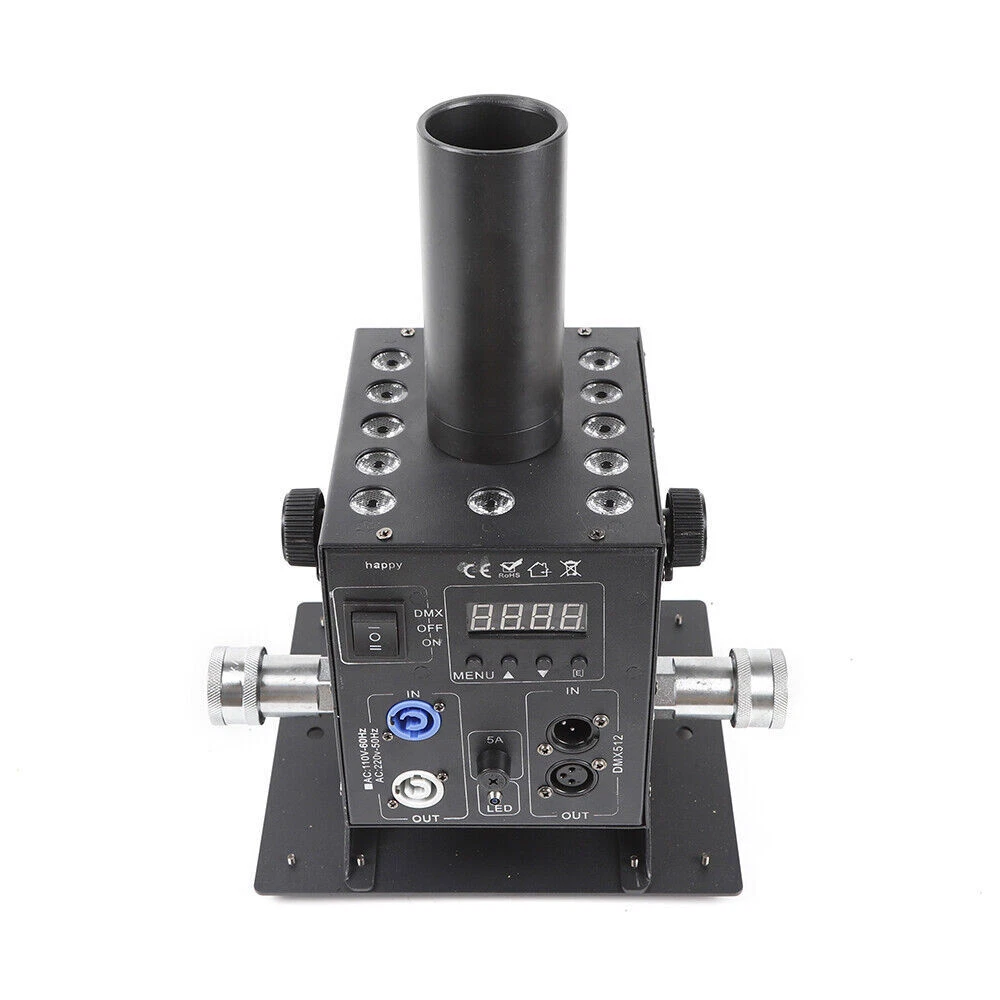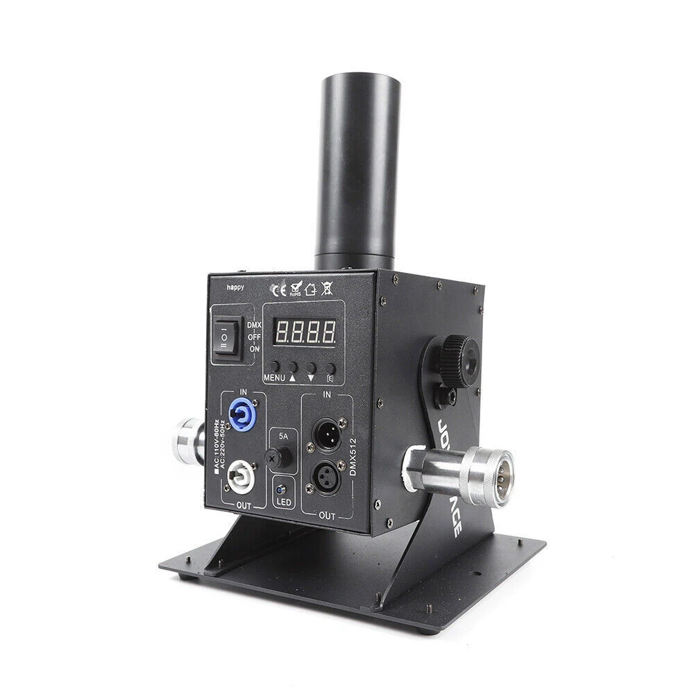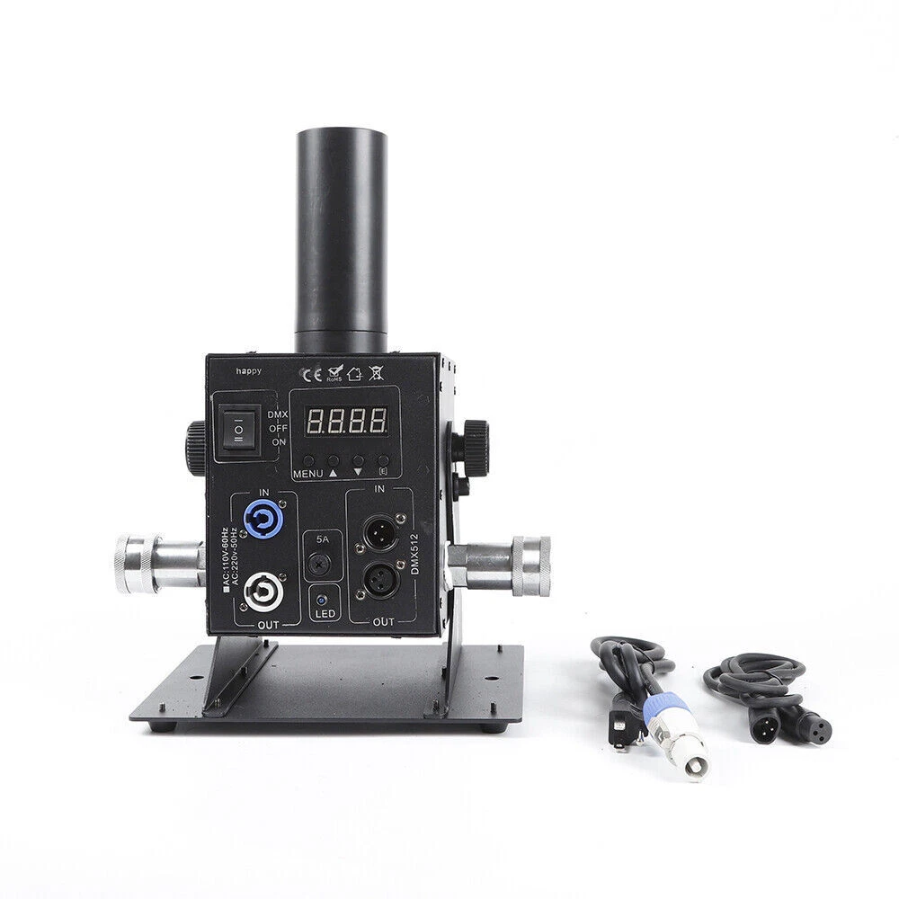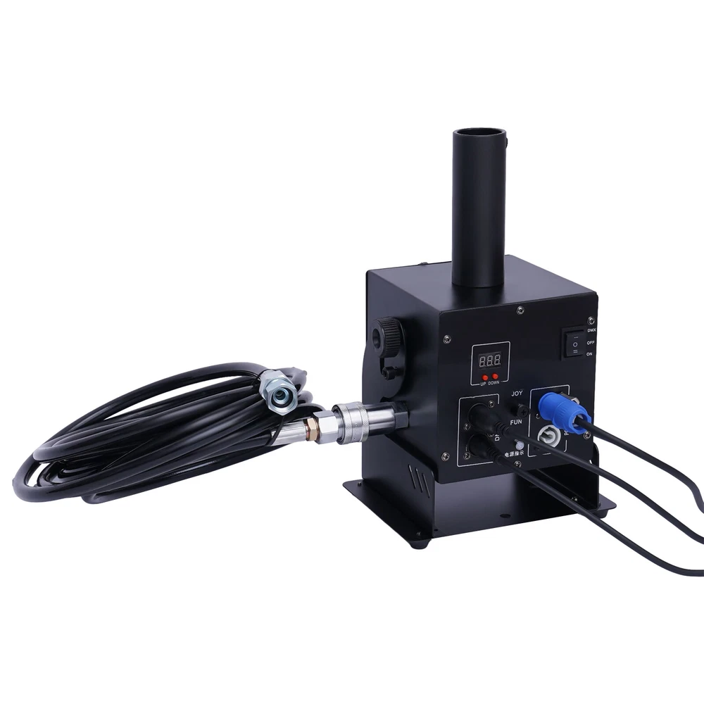 Cryo LED CO2 Jet Machine Fogger Smoke DMX DJ Disco Club Stage Show Effect ❤Welcome❤ NOTE:Before Placing a order ,please check the details you need.and then choose the right option to make the payment. this has 7 options to choose from,the functions Varies Differently Type 1:Single Tube, DMX Function , Angle Tilt Adjustable Technical features: Operation mode: 2 modes, DMX and Power on/off DMX channels: 2 channels (CH1-on/off, CH2-Length of ON) Linkable: Yes, via DMX cables Power: 150W Voltage: 110V 60HZ Co2 gas shot angle: adjustable 0-100 degree Shot height: about 8 meters Nozzle materials: ABS Hose length: 6meters This Package Includes: 1x Co2 Machine 1x Power Cord 1x DMX Cord 1x 6 Meter Hose Type 2:Double Tube,Digital Display ,DMX Function DMX Co2 jet machine Double Pipe for Stage Show Wedding Nightclub Bars Co2 gas tank is Excluded Magic Effect Co2 jet DMX machine remains industry standard when referring to mounted Co2 jets. Its simple design and ease of use allows for both DMX and Standard power on/off capabilities. This is by far the most versatile and most sought after unit on the market. From clubs to concerts, private parties to festivals, the Magic Effect Co2 jet DMX will get the job done. Magic Effect Co2 jet DMX machine, one of Magic Effect best selling products. When in DMX mode, can be controlled by a DMX 512 controller utilizing 2 channels, 1 channels of DMX for on/off control and the 2nd channel of DMX for the length of “ON” before the jet automatically shuts off. While in standard mode, this co2 jet machine can be controlled by any on/off switch to the power supply feeding power to the unit. Example: power strip on/off button being used to turn the Magic Effect co2 jet on/off when jet is plugged into the power strip and is in standard mode). Magic Effect co2 DMX jet machine is lightweight and has capabilities to be linked to other units for simultaneous control of multiple jets by connectors and pipes. This co2 jet machine comes in AC110V with ability to be installed on truss or used on floor. Built to withstand rugged conditions, the co2 DMX machine reaches heights of 25-35 feet (7.6-10.6 meter) and weight only 7.4lbs(3.4kg). With easy assembly, included manual and high pressure co2 hose, and quick set up time, you will be ready to use this co2 jet in minutes. Pending you already have co2. Compatible with both high and low pressure systems. 1 year manufacture warranty. Co2 gas tank is not included. The hose and co2 jet listed here have quick connected fitting already installed so you can easily disconnected the hose from the Co2 jet when not in use. Electricity is required for this package. Simply connect the hose to the Co2 jet and other end of the hose to your Co2 tank. Then connect your DMX cable to the co2 machine and other end to the stage light controller. And you ready to go. On this unit, the DMX switch allows you to turn DMX on ( to use with DMX 512 controllers) or off to use as a standard co2 jet ( controlled using a power switch where as the on/off ability comes from power being applied to the unit) This co2 jet shoots a 25-35 feet (7.6-10.6 meter) high stream of co2 which is about 4-6 feet wide. These co2 jets are used in stage productions, nightclub, bars, and live performances, concerts, haunted houses, special events and much more. The co2 gas dissipates immediately after coming out of gun so the cloud vanishes in seconds after the user stops activation. Type 3:Single Tube,Digital,DMX Function Instruction: This CO2 Jet device can create amazing effects by ejecting a 5-8m (15-24 ft) high white gas column. It is suitable for big concerts, fashion shows and night clubs. Parameters: 1. Power: 200W 2. Control: DMX 512 3. Spray Height: 8-10 meters 4. Voltage: AC 110V, 60Hz 5. Weight: 14.5 Lbs (pounds) (6.6Kg) 6. Carton Dimensions:31cm x 28cm x 25cm Installs illustration: 1. Places the large CO2 column on the corresponding position 2. Connect the co2 hose to gas bottle 3. Put down the bottle and keep it flat 4. Connect the machine with the gas bottle via the hose, hose one side connect with tank, the other side connect with the machine 5. Turn on the valve of the gas bottle 6. Connect the machine and the console. 7. Before disassembling, firstly turn off the bottle valve, let out the gas which remain in the pipe, then turn off the power, lastly separate the connector of the gas bottle. Operation method: DMX512 signal control: Press to the “DMX” switch, there has 6 channels under the DMX512 signal environment. After connect the DMX512 console, push the first switch will Continue for 1 second CO2 column; push the first switch always , will continue for C02 column. Warning: CO2 Blasts cannot exceed 10 seconds in length for each blast; two blasts cannot occur within 5 seconds of each other, Power must be connected last as to ensure safety. Item included: 1* CO2 JET 1* Signal line 1* Hose about 20FT(6Meters) 1* Power line Type 4:Single Tube, Handheld, 7 Color 6LED Product Description Product Name: LED CO2 Confetti Cannon This is stage LED Co2 Gun + LED Confetti Cannon machine, The varied color light integrates CO2 gas making magic effects. With manual control, the machine can spray colorful confetti paper to 7-10meters. it is easy to operate but create various effects. They are widely using in concert,stage, club,etc Advantage Perfect appearance and technical design with big confetti cannon, can shoot out confetti with CO2 together Large amount co2 gas output, Led colorful co2 spray cannon, Gas spray distance can be 8-10 meter Comfortable handle design, Professional anti false triggering insurance Specification: Power supply: AC110V/60Hz Power : 20W Control mode: By Handle Manual control Co2 Shoot distance:8-10M Confetti Spray distance: 6-7 meters 7pcs color LED on head of tube, will light on once move the trigger Tube and confetti tank: Led strip inside, 7 Colors change automatically Battery: 8 pcs AA (Not included due to can’t ship by express) Battery 