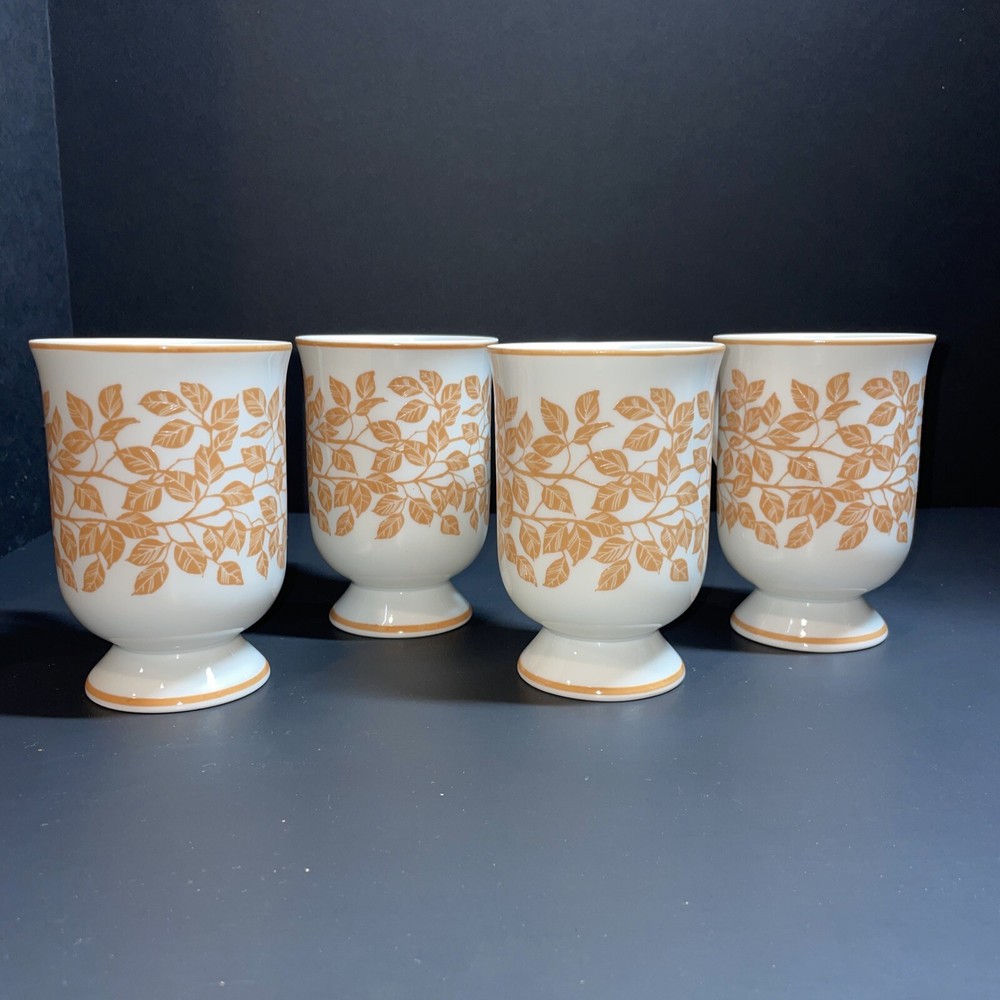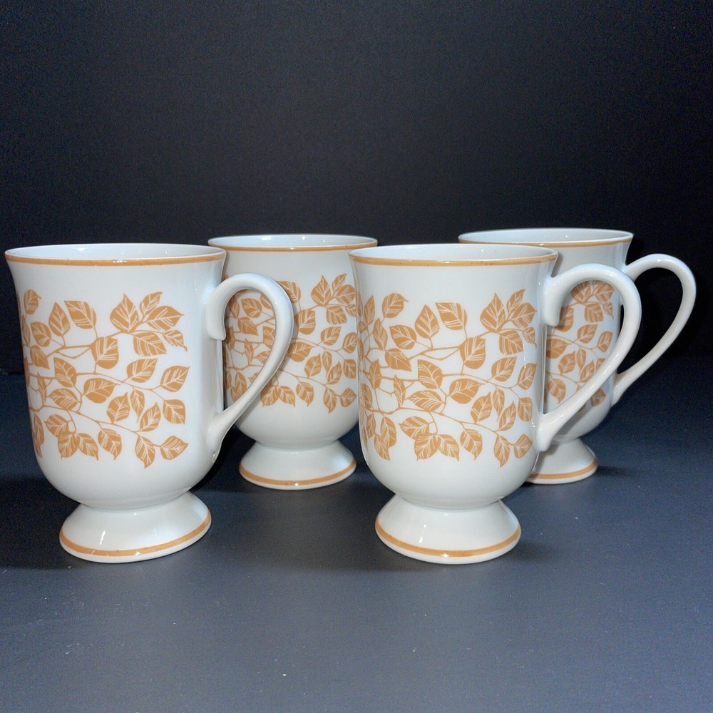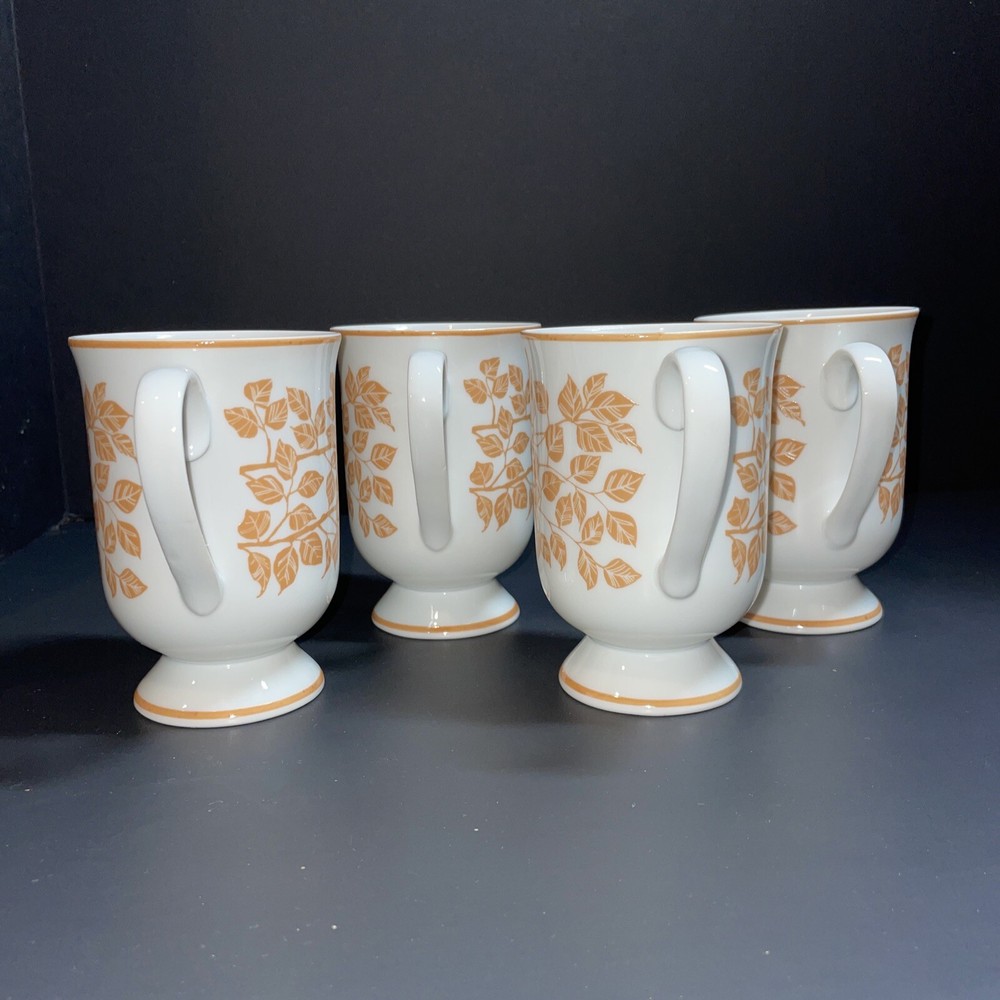 Holt Howard Pedestal Leaf Mugs Orange Mid Century Footed Vine Cups 1960s. Set of 4 mugs See last picture for slight paint blemishes on footed area.