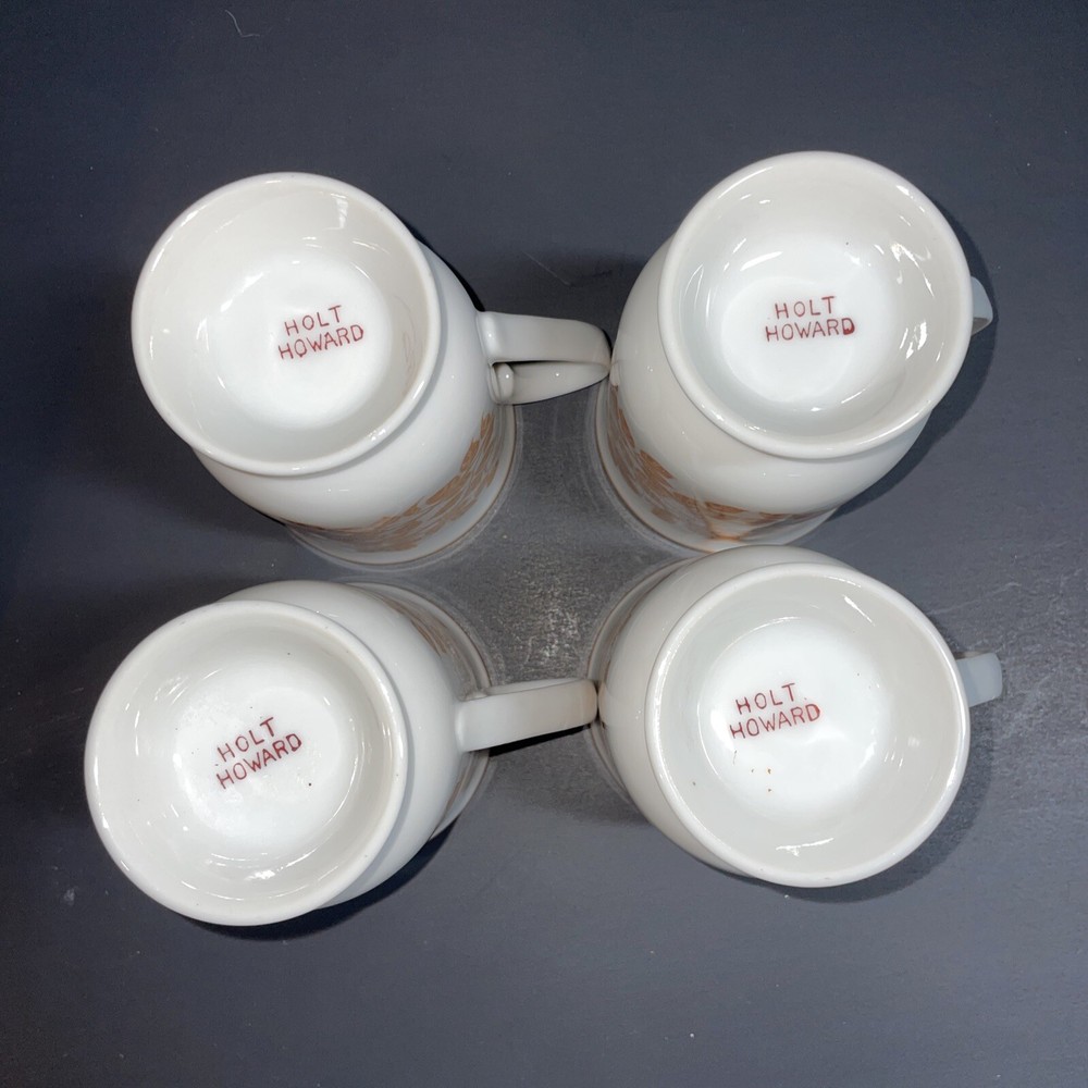 Holt Howard Pedestal Leaf Mugs Orange Mid Century Footed Vine Cups 1960s. Set of 4 mugs See last picture for slight paint blemishes on footed area....