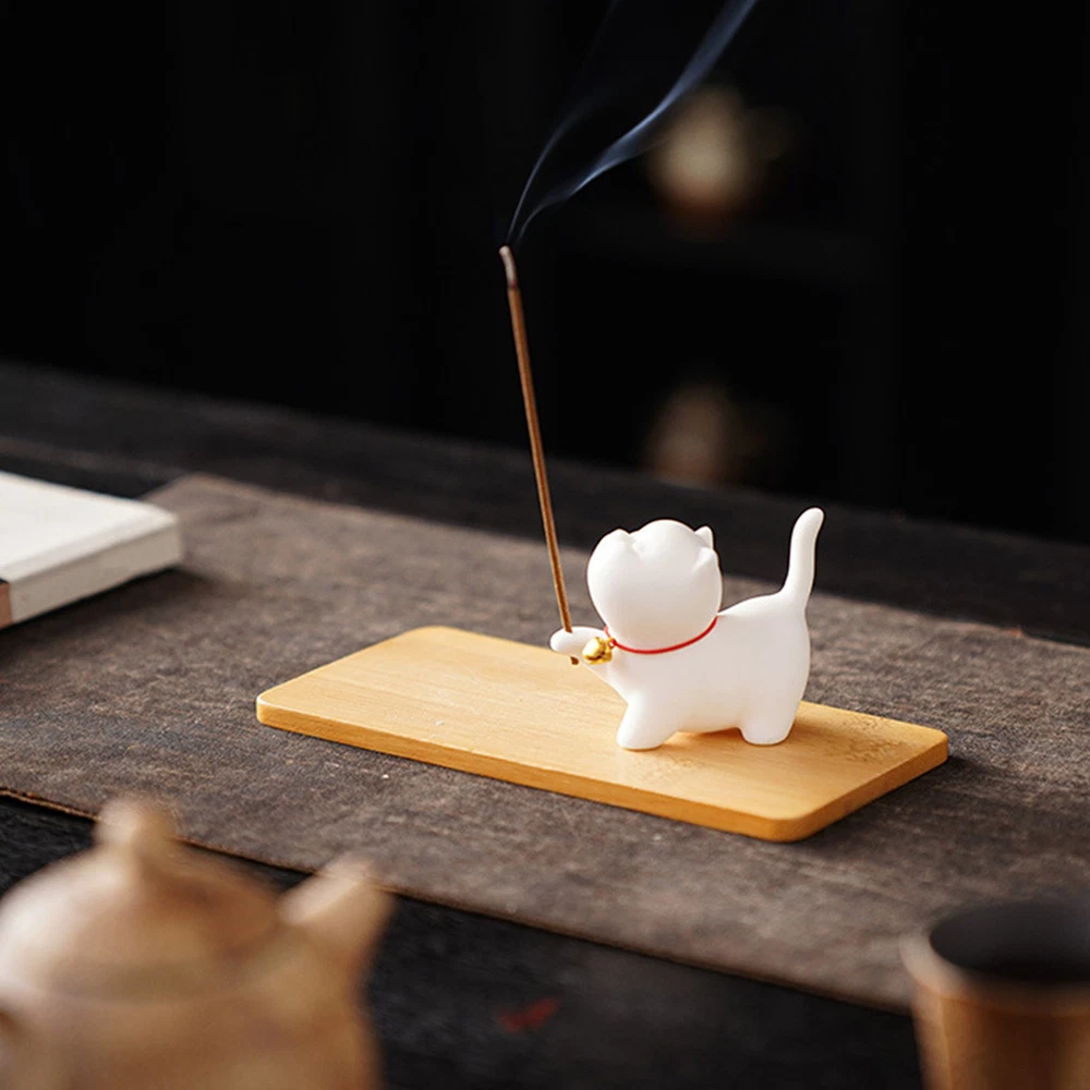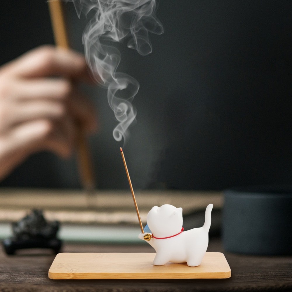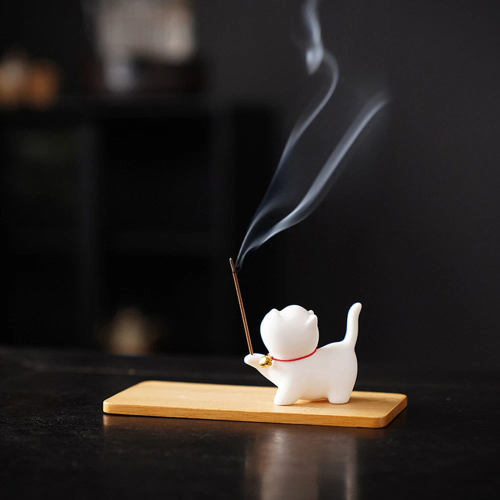 Absolutely love this adorable incense holder! The cute cat design adds charm to any room, and it keeps ashes neatly contained—no mess at all. The wooden base is sturdy, and the smooth finish makes it look elegant. Perfect for creating a calming, stylish atmosphere. A must-have for cat lovers or anyone who enjoys burning incense!