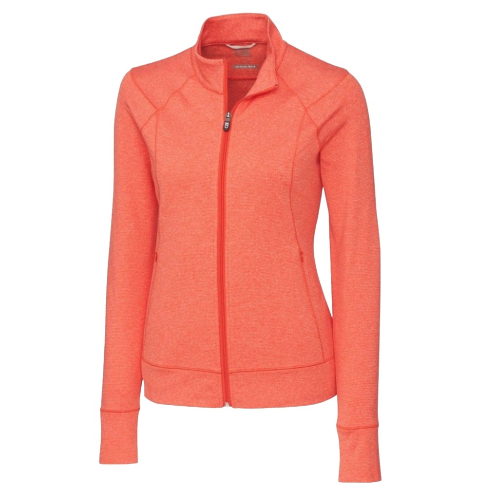 Elevate your activewear collection with this Cutter & Buck Shoreline Full Zip Jacket in size M. The mid-length jacket is made with 100% polyester outer shell material and features a solid pattern in a vibrant orange color. The athletic fit provides comfort and ease of movement, making it perfect for gym and training activities during winter, fall, and spring seasons. This jacket has a full zip closure and long sleeves for added warmth. It also has insulation material made of polyester to keep you cozy. Machine washable and easy to care for, this basic jacket is a must-have for any activewear wardrobe. It comes with features like a zipper and is available for women.