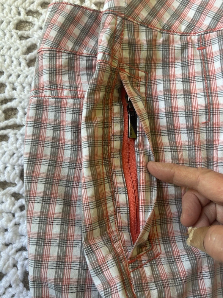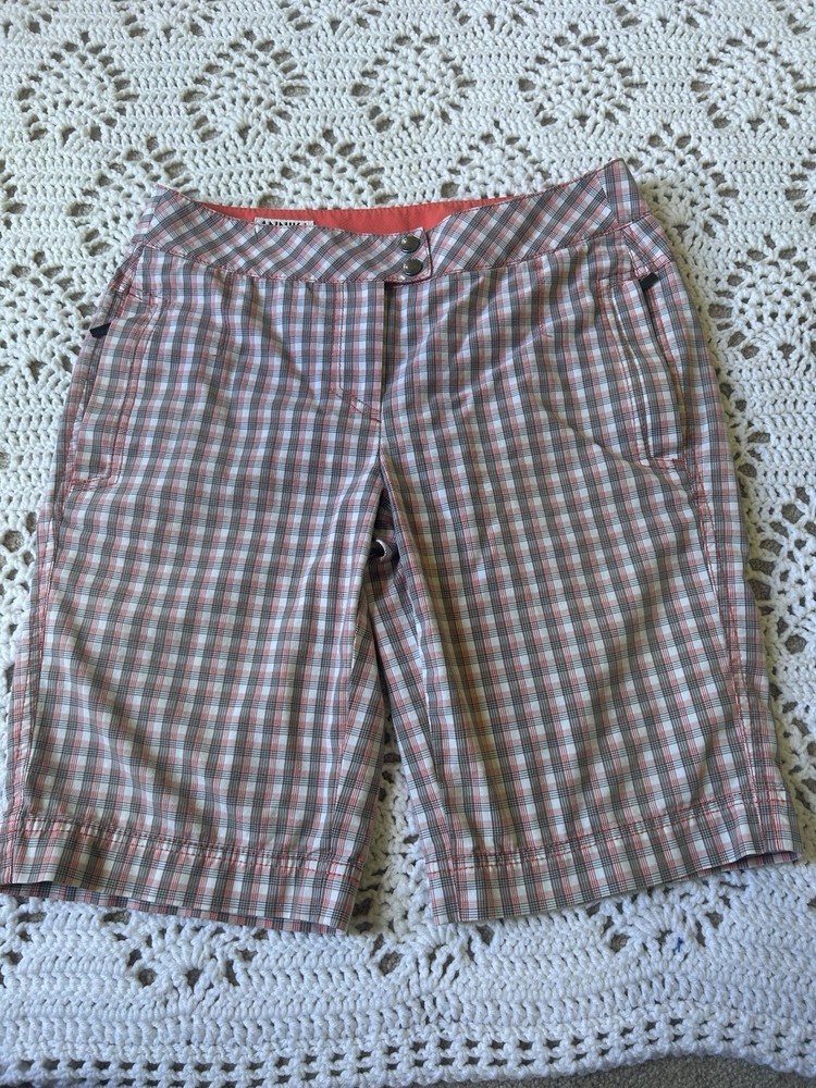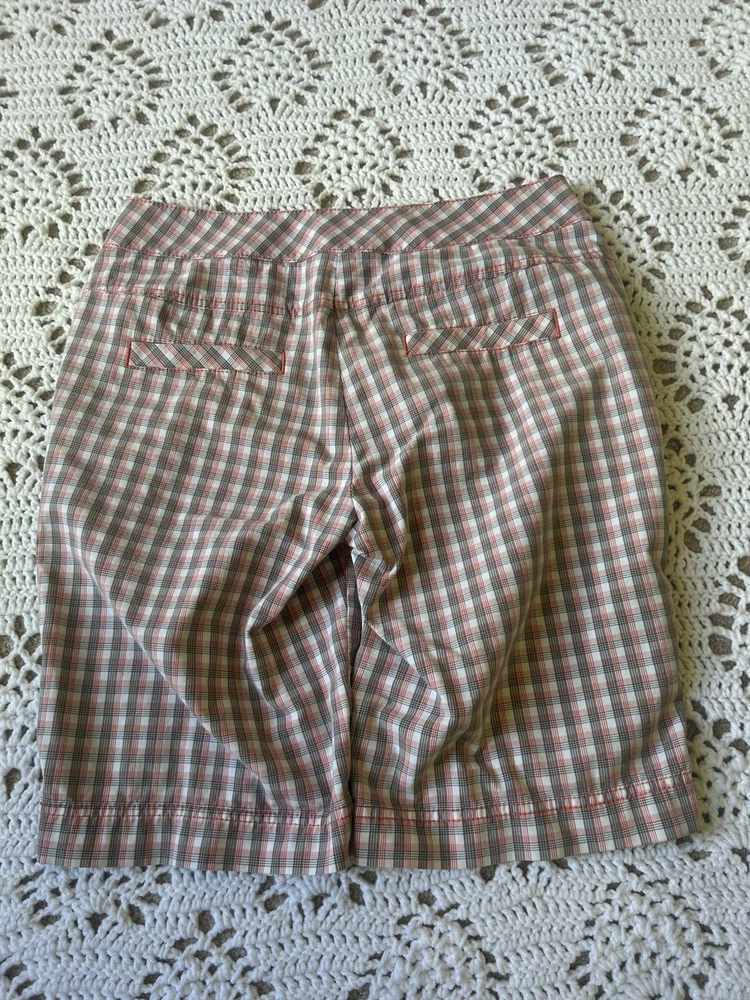 Inseam 11” Waist lying flat 16”which seems bigger for a size 6 The side pockets zip Back pockets look like slits, but are deep...