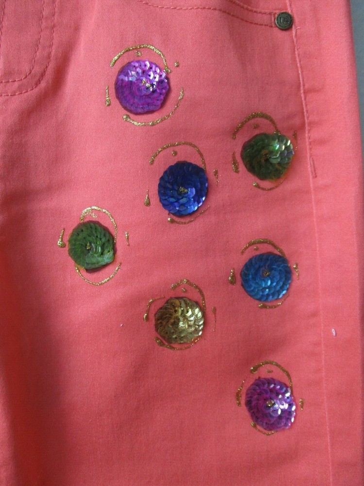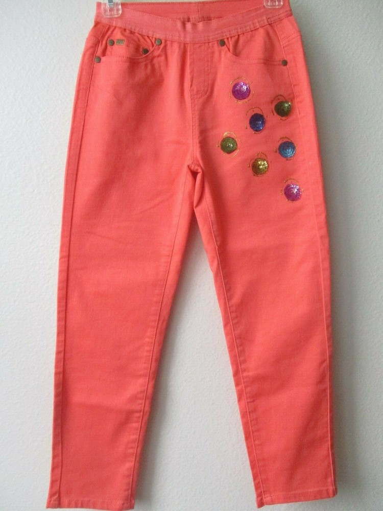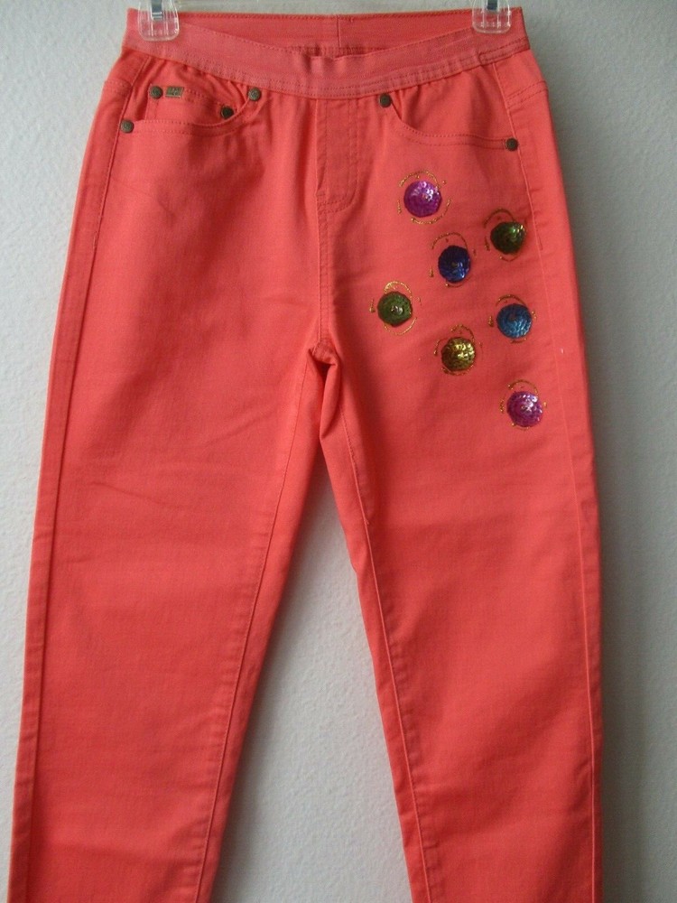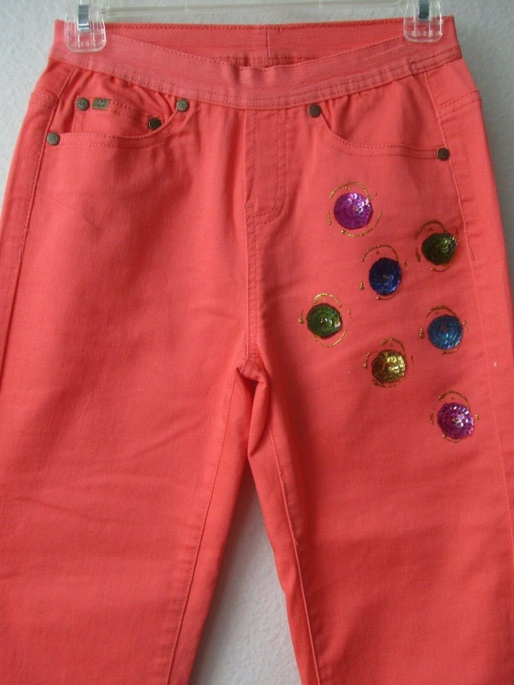 DIANE GILMAN ORANGE EMBELLISHED CROPPED JEANS * BRAND - DIANE GILMAN * SIZE - XS * WAIST - 24" * HIPS - 34" * RISE - 9" * INSEAM - 23 1/2" * MATERIAL - 66% COTTON 31% POLYESTER 3% SPANDEX * COLOR - ORANGE * 2 FRONT POCKETS * 2 BACK POCKETS * CONDITION - NWT * HAND WASH INSIDE OUT * JEANS MADE IN CHINA * HAND EMBELLISHED IN USA