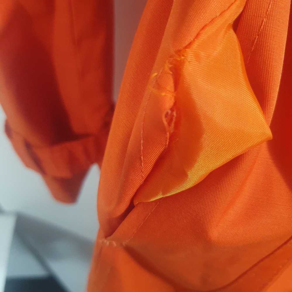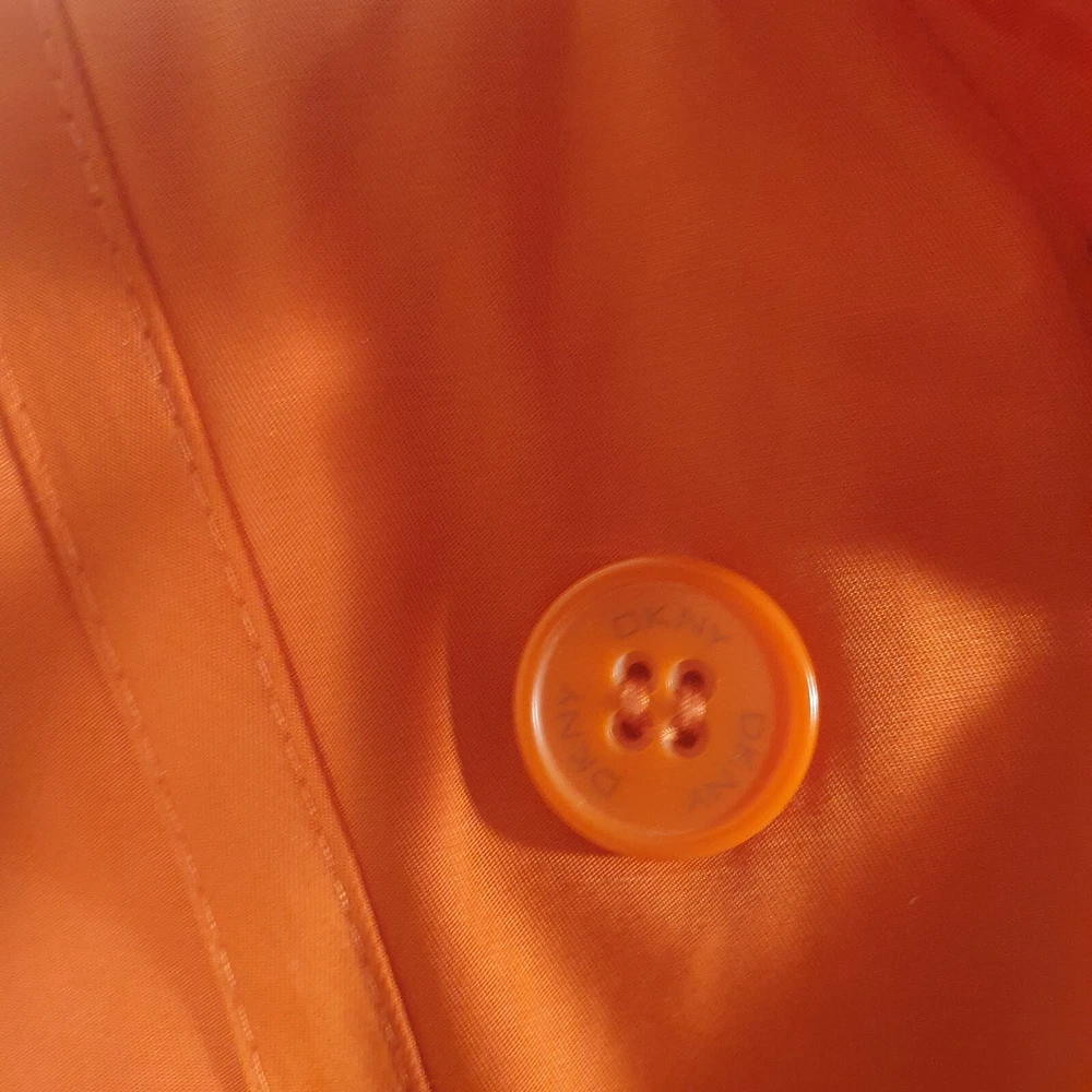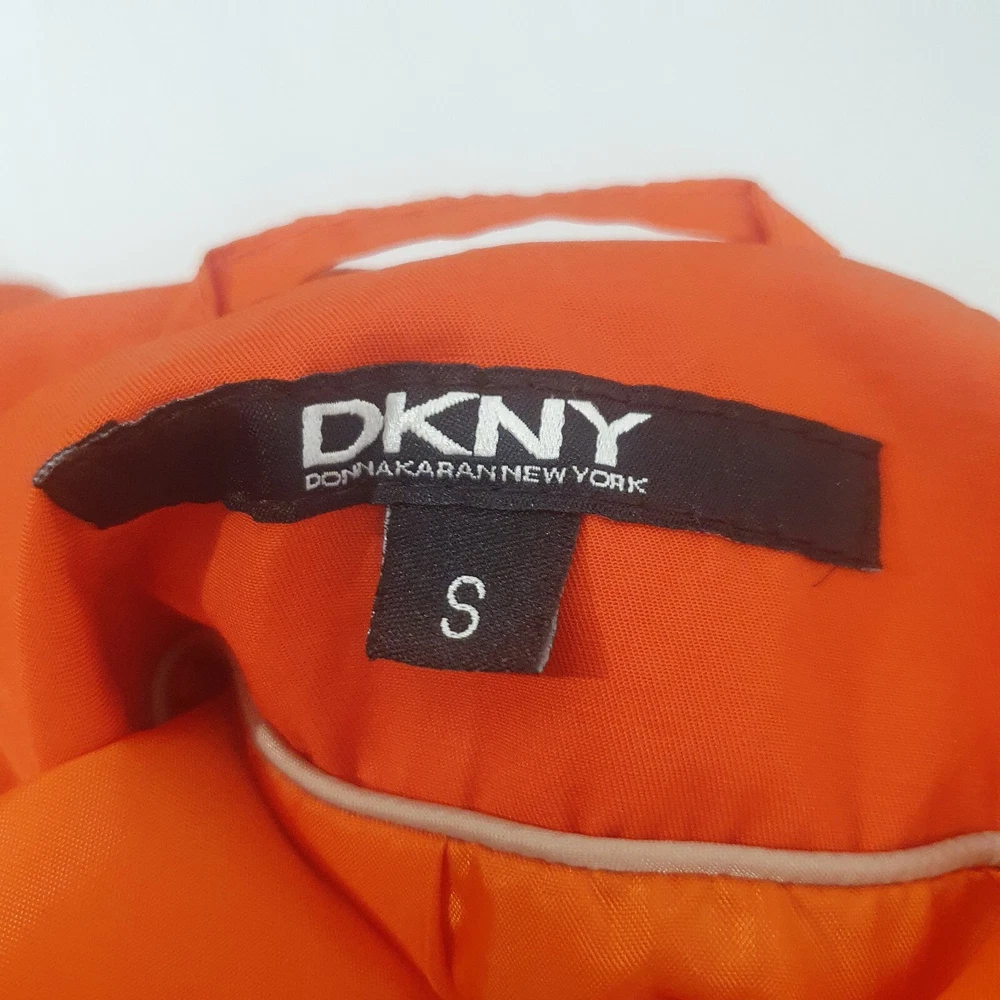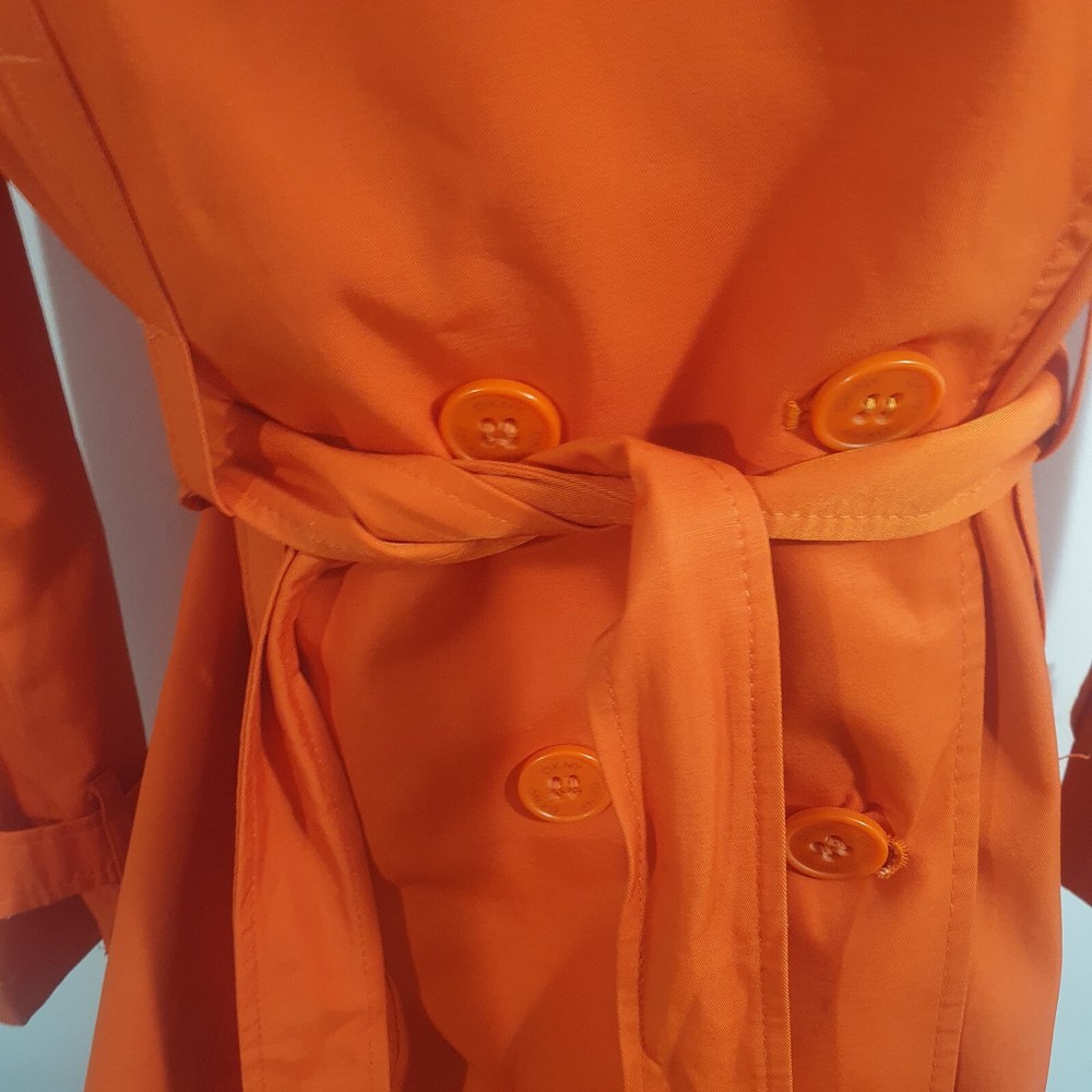 Love this vibrant orange trench—perfect for adding a pop of color to any outfit! The mid-length fit is flattering, and the cotton blend fabric feels sturdy yet comfortable. Great for layering over workwear or dressing up casual looks. The classic DKNY style shines, and even though the pocket lining needs a quick fix, it’s a steal for the price. Super versatile and eye-catching!
