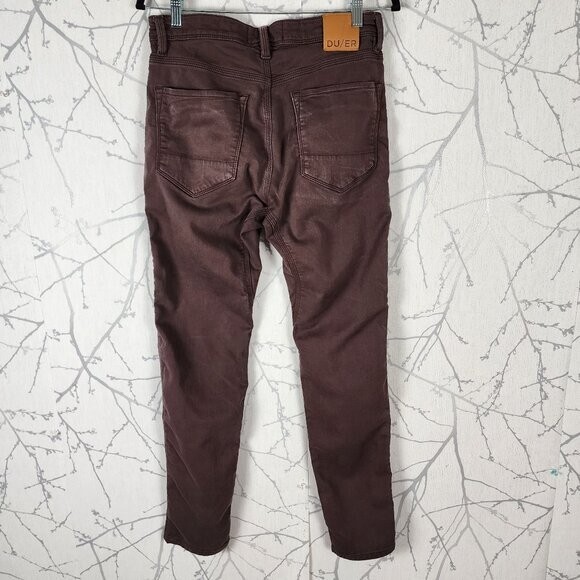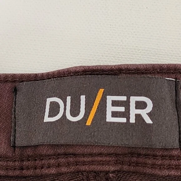 DU/ER Orange Brown Sateen Stretch Mid Rise N2X Slim Fit Pants Men's 30 x32 Waist: 30" Rise: 9" Inseam: 30" Good used condition: no rips, marks or stains. Hemmed to 30" inseam