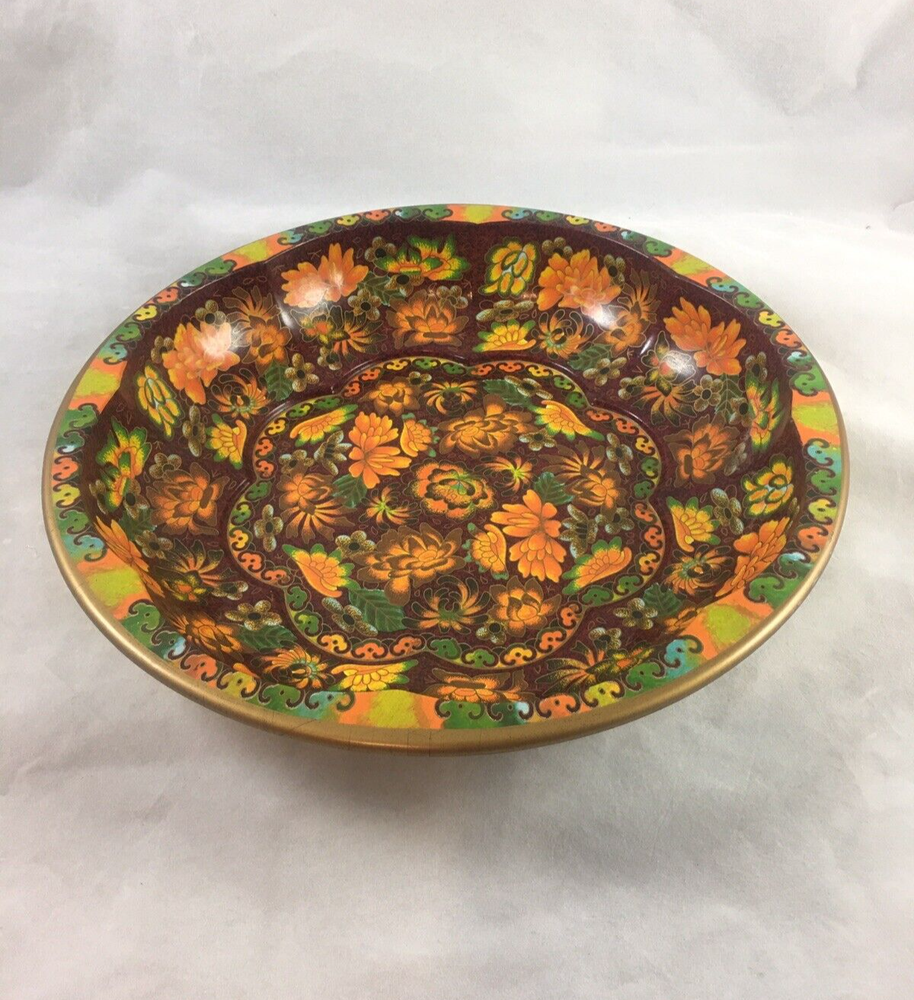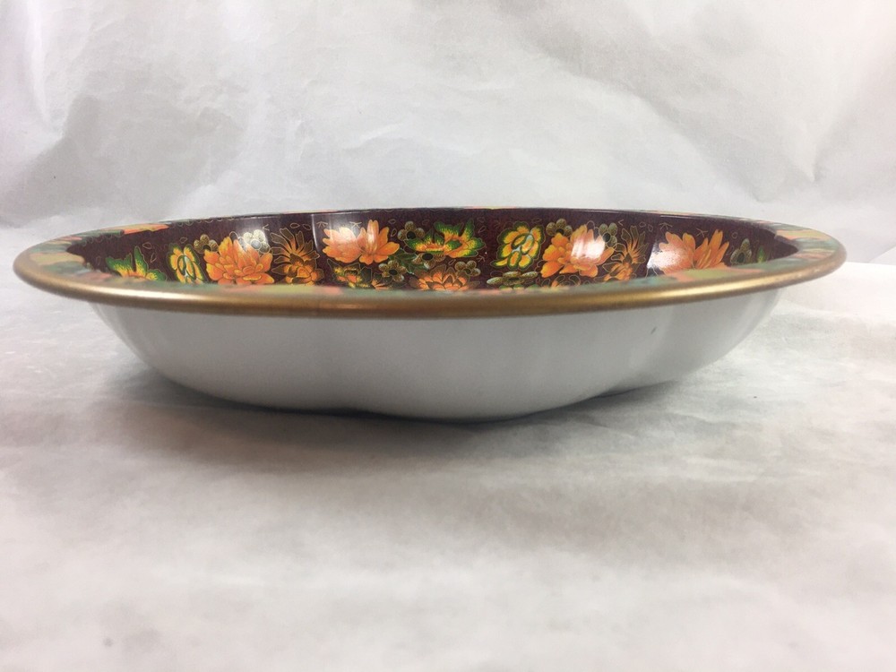 Daher Decorated Ware Round Tin Orange Floral Bowl made in England. It is 10.25” in diameter. Vintage 1971, it is free of dents and dings, as shown.