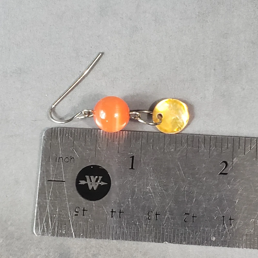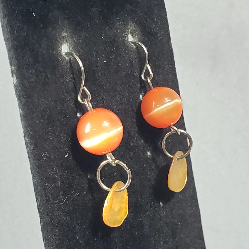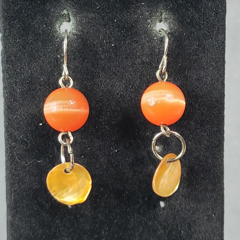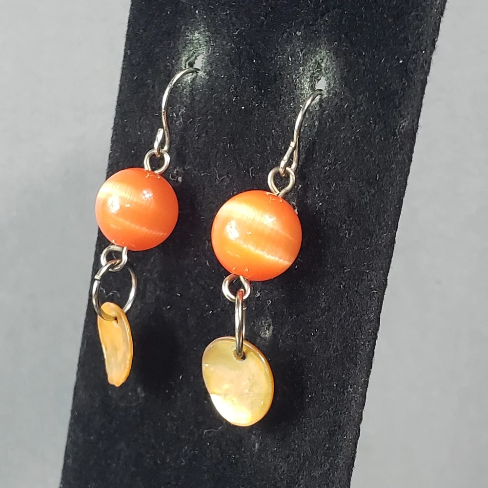 Up for sale is a set of dangle earrings. They are silver tone and orange in color. They are in good pre owned condition! Please view all posted pictures as they are part of the description. If you have any questions please ask. Please check out my store for more great deals that are listed every day!!