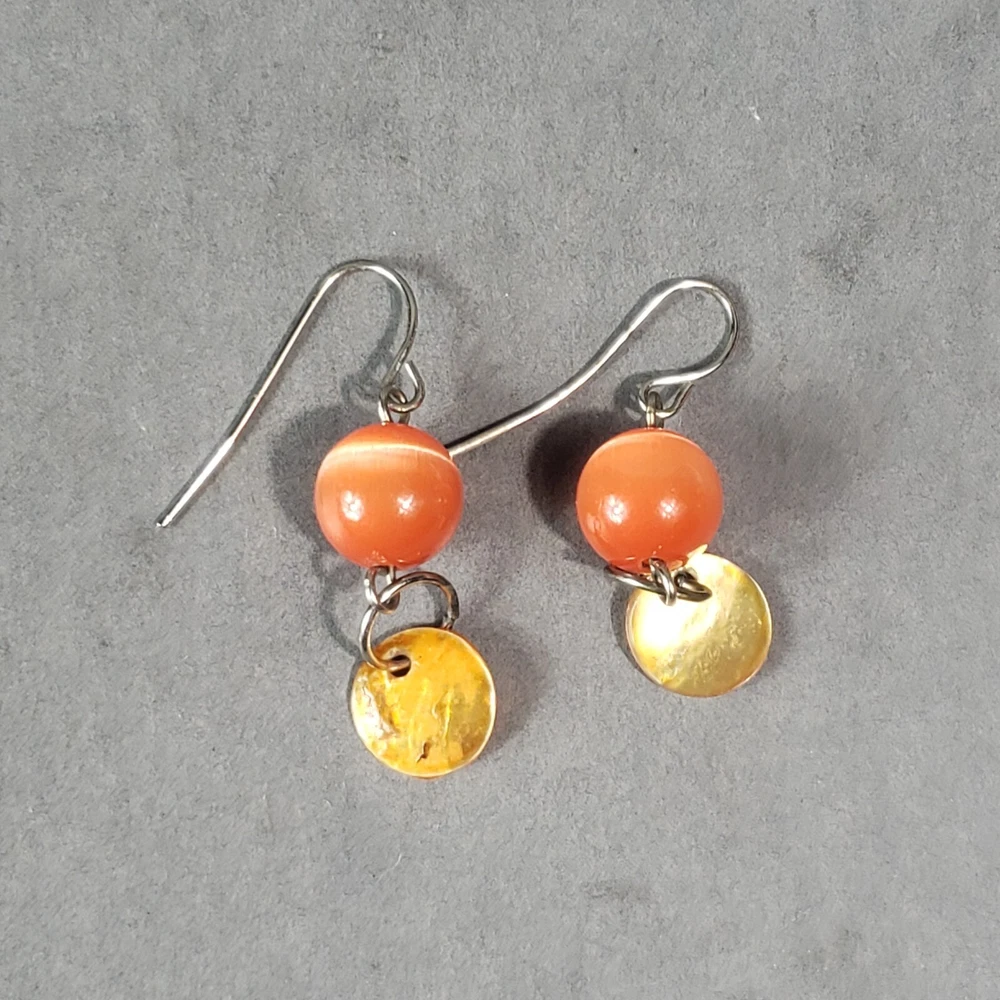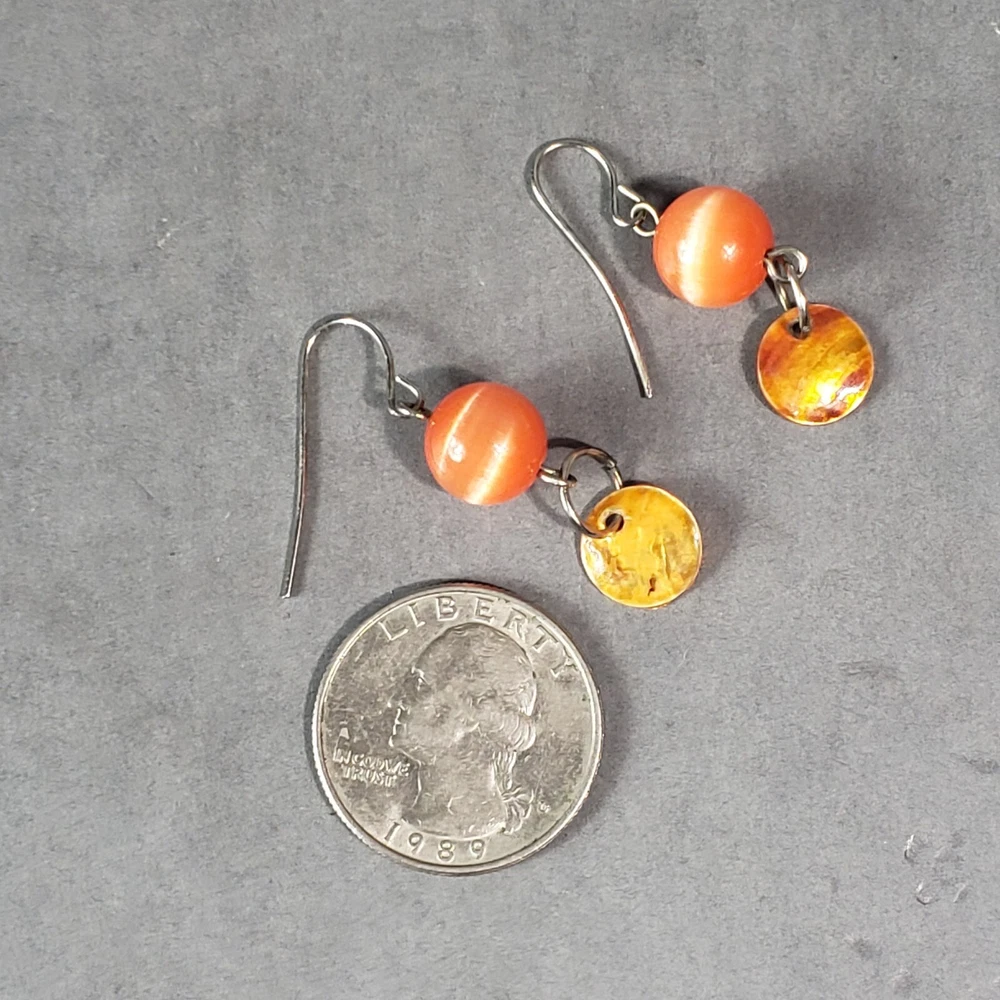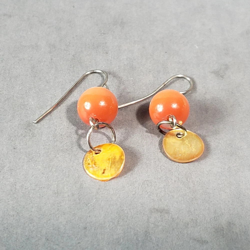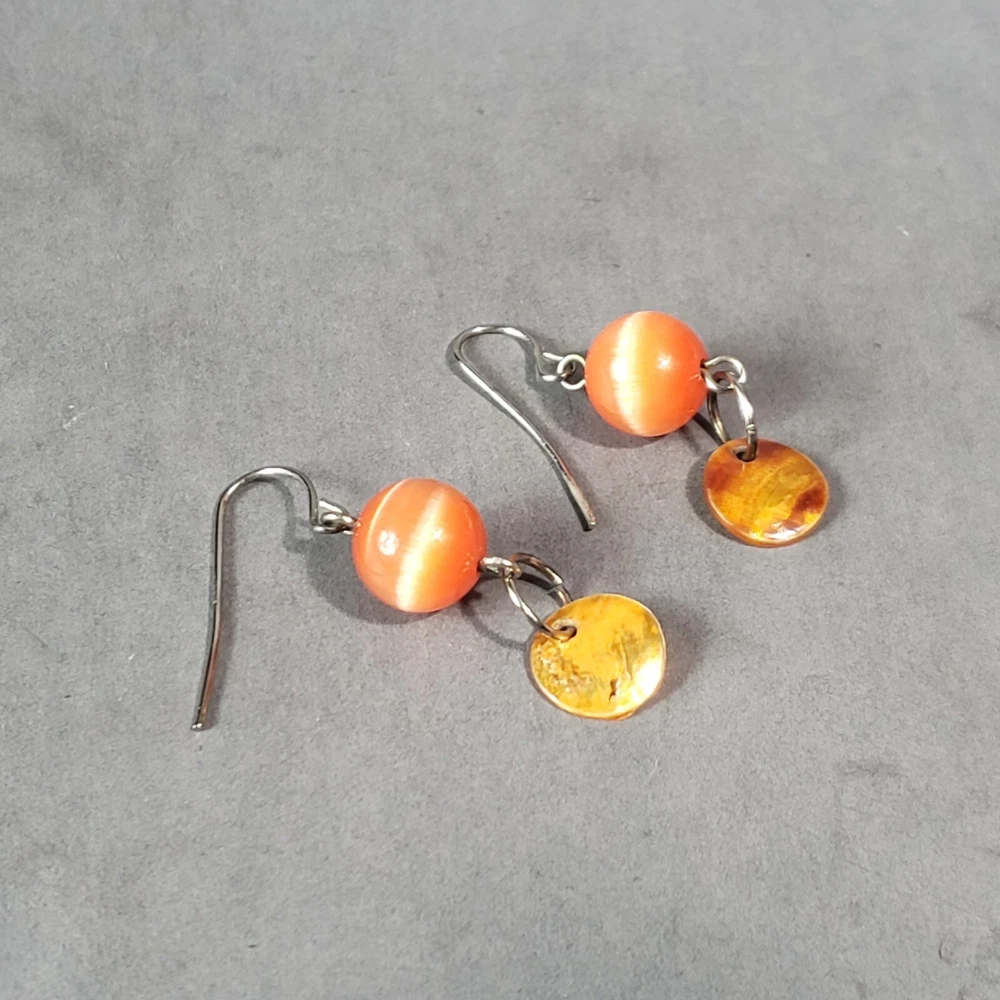 Up for sale is a set of dangle earrings. They are silver tone and orange in color. They are in good pre owned condition! Please view all posted pictures as they are part of the description. If you have any questions please ask. Please check out my store for more great deals that are listed every day!!