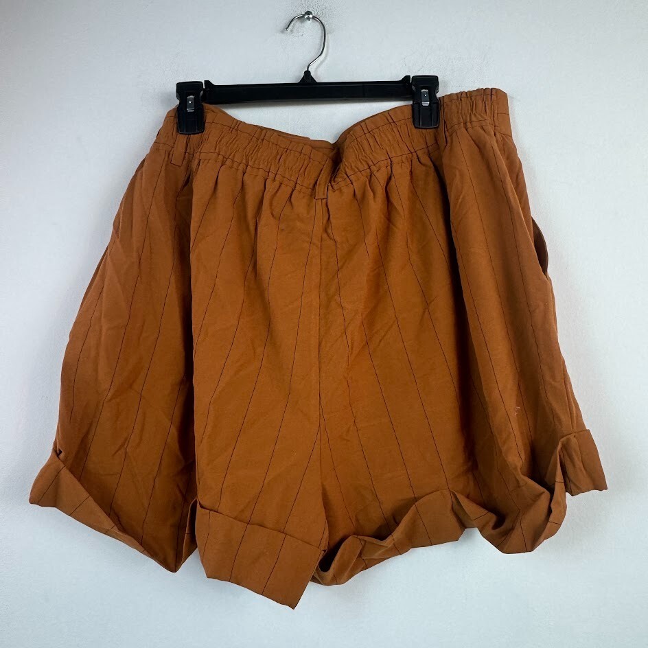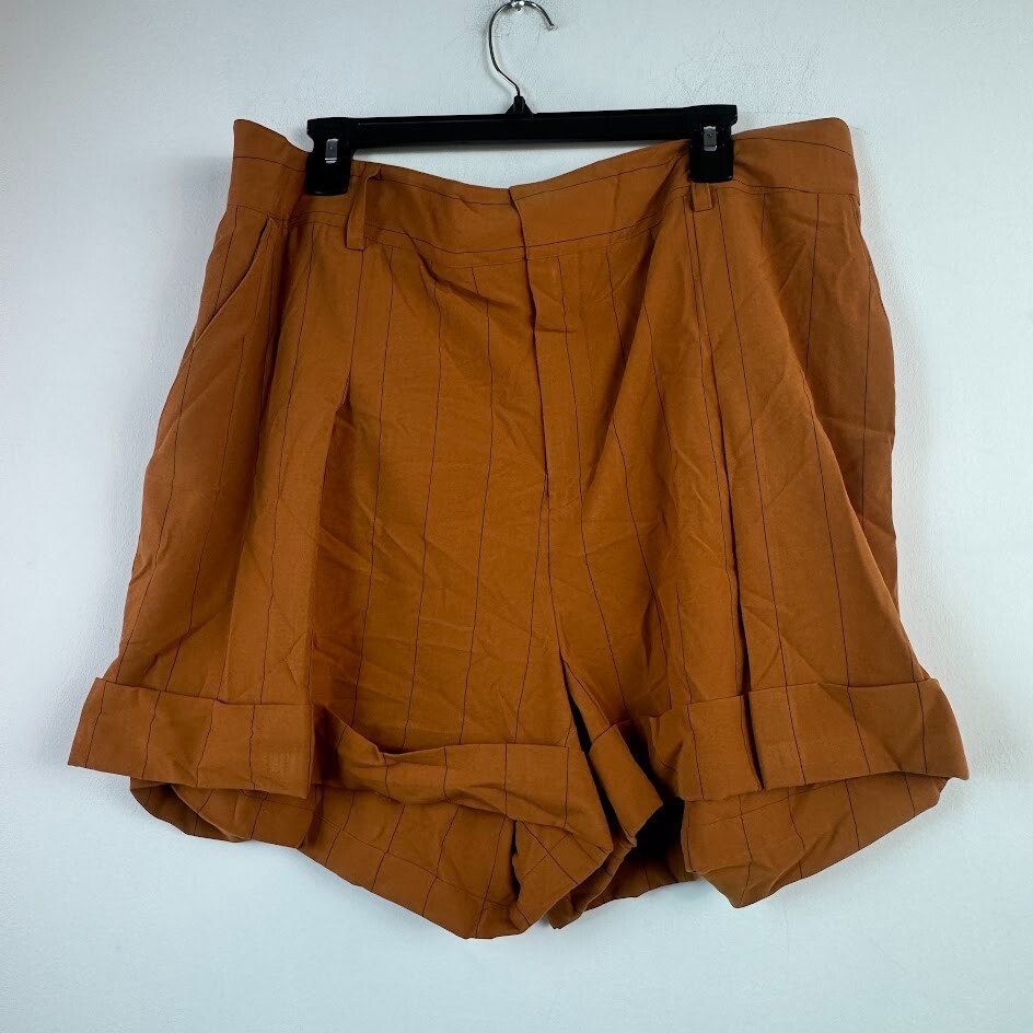 Danielle Bernstein Womens Plus 20W Dark Orange Cuffed Mid Rise Shorts NWT AT29 Model photo for reference only Brand: Danielle Bernstein Size: 20W Color: Dark Orange Pinstripe Details: Pockets, Zip Fly Fabric: Polyester/Rayon/Spandex Care Instruction: Cold/Gentle with like colors Measurements are taken by hand laying flat, in inches, and are approximate. Please Reference Brand Size Chart Waist: 20.5 Front Rise: 16 Back Rise: 20 Inseam: 4 Outseam: 17