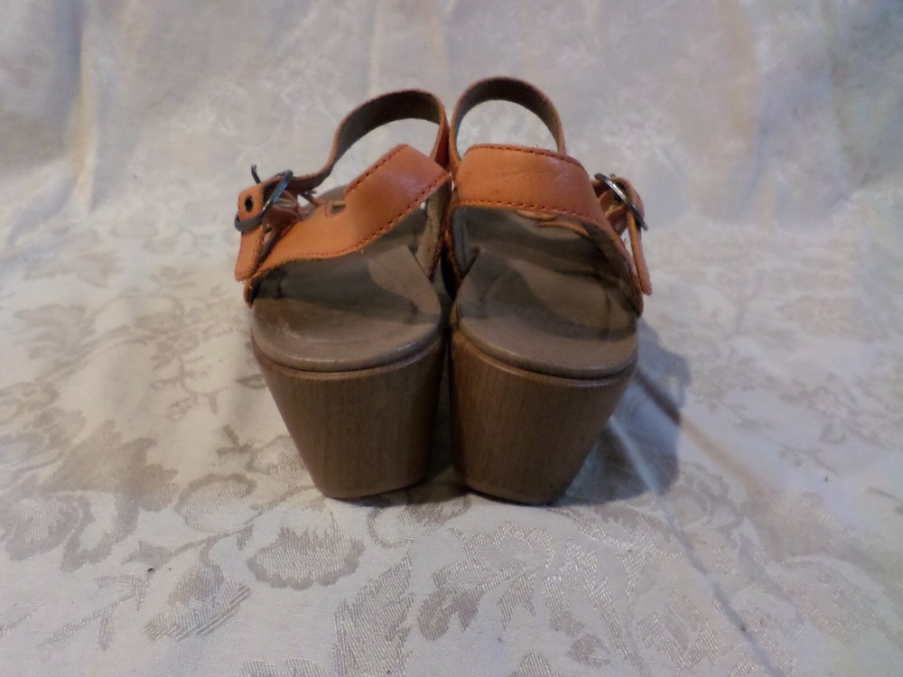 Great shape Uppers and insoles are very clean and outsoles show light even wear. Heel is about 2.5" with a 1" platform...