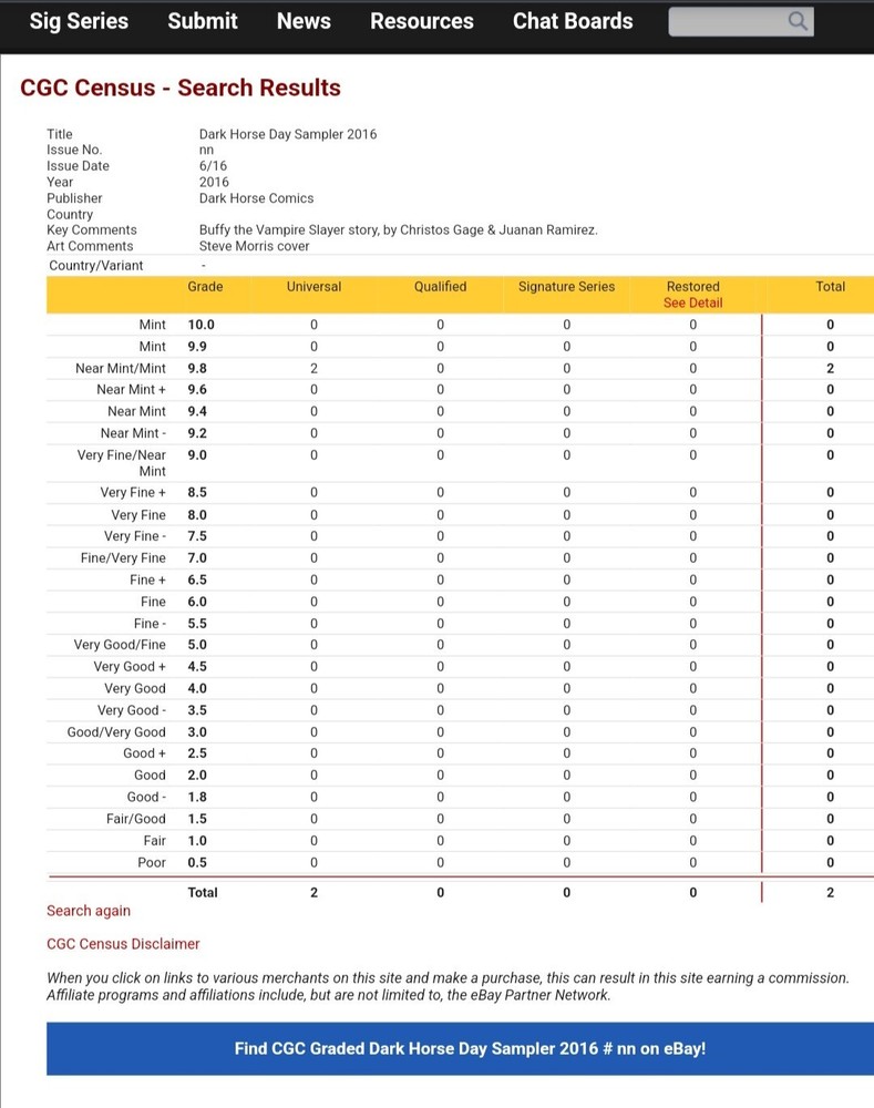 Dark Horse Day Sampler 2016 Buffy Vampire Slayer Sin City CGC 9.8 Only 2 Census