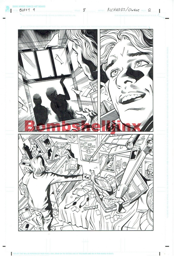 Dark Horse Joss Whedon's BUFFY 9 #8 page 2 Original Art by Cliff Richards and Andy Owens * PENCILS and INKS ON 11.5 X 17.5 ART BOARD. * I WILL INCLUDE INSURANCE IN THE DOMESTIC SHIPPING. TERMS: * Serious bidders/buyers only. * I only accept PAYPAL payment. * You will receive the exact item(s) shown in the pictures above. * I DO NOT accept returns. * Please check pictures carefully and message me for additional photos or with any questions before bidding/buying. * Not responsible for hair issues or anything out of place inside the box, these get bounced around in shipping. * Adult owned and from a smoke/pet free home. * Payment due within 24 hours of auction/purchase. If payment is not received within 24 hours, the item will be re-listed and appropriate feedback given unless other arrangements have been made. * Shipping Discount: We do combine shipping when multiple items are purchased as long as the items can be packaged together. Please wait for a combined invoice from eBay before making a payment. International Buyers – Please Note: Import duties, taxes, and charges are not included in the item price or shipping cost. These charges are the buyer's responsibility. Please check with your country's customs office to determine what these additional costs will be prior to bidding or buying. THANKS FOR LOOKING!!!