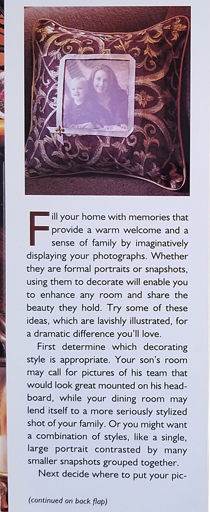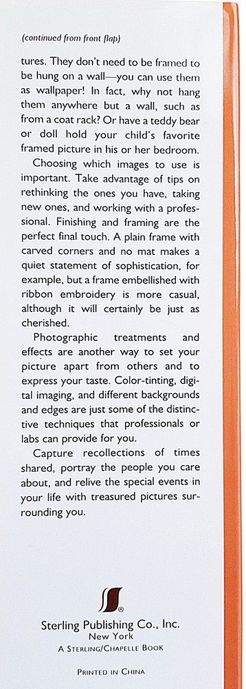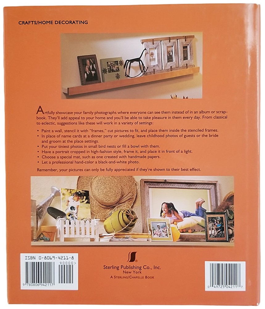 - The book "Decorating with Family Photographs" by Ryne & Teresa Hazen provides a multitude of creative ways to display your treasured memories. - Sterling Publication Company, 2000 - Hardcover, 128 Pages - ISBN-10: 0806942118 - 9" x 10.25" - The book is in very good condition with slight cover/edge wear and creasing; there are a few scratches on the back of the dust jacket. The pages are clean with no markings. Please look at the pictures and let me know if you have any questions.