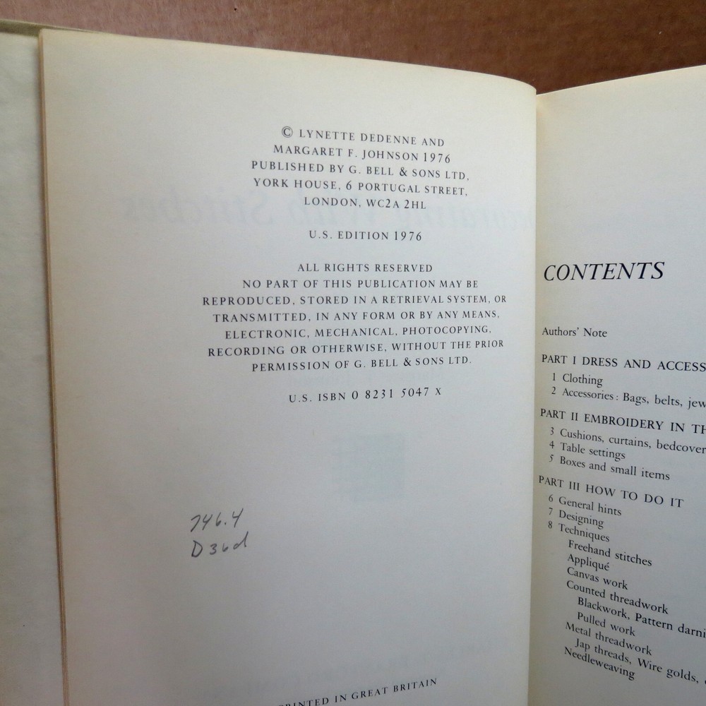 Hardcover, ex-library with usual suspects in condition (stamping, library identifiers etc), great strong binding Embark on a creative journey with "Decorating with Stitches," a comprehensive guide to needlework and decorating by Margaret F. Johnson and Lynette de Denne. Published in 1976 by Charles T. Brandford Company, this hardcover activity book is a treasure trove for enthusiasts of needlepoint, art, and decor. Its 144 pages are filled with insightful tips, vibrant illustrations, and practical advice to enhance your crafting and decorating skills. This U.S. Edition volume is a testament to the timeless appeal of hands-on creativity. It features a collection of exquisite designs that cater to both novice and seasoned needleworkers. Whether you're looking to spruce up your living space or simply indulge in a hobby that celebrates the art of stitching, this book is a valuable resource for your craft library.