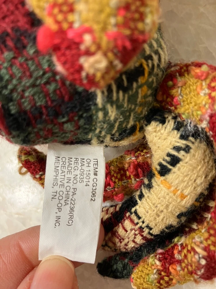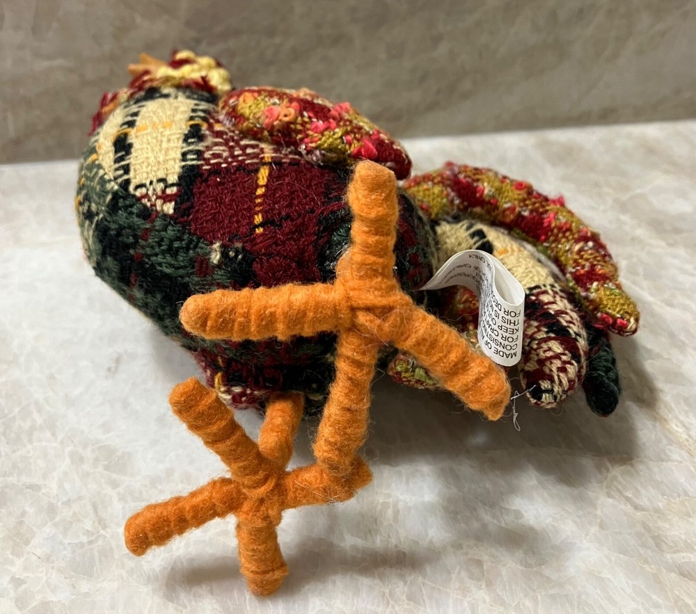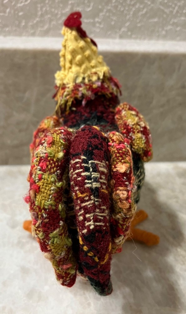 Decorative Plush Calico Tweed Stuffed Chicken Figure Creative Co-Op Approximately 6” tall Beak feels like plastic Non-smoking household