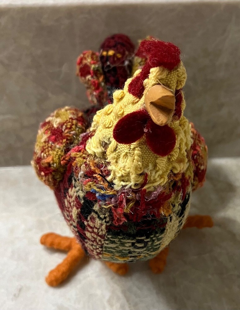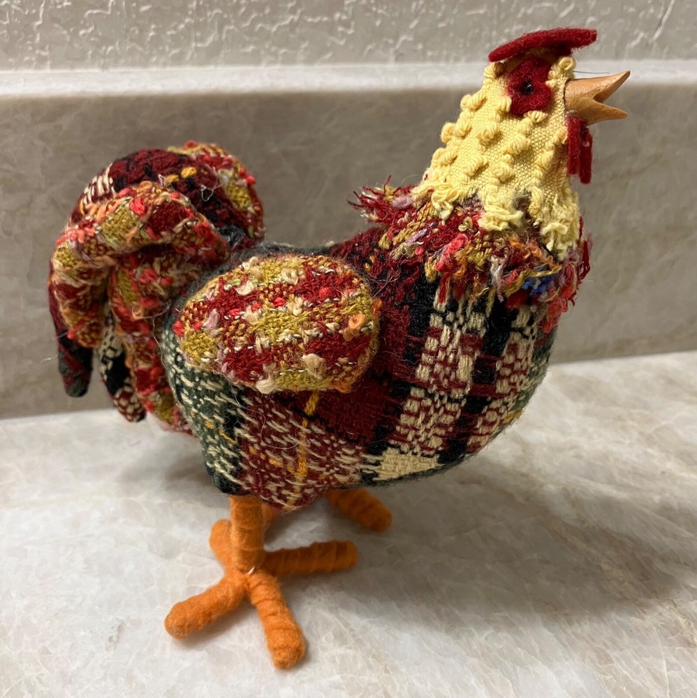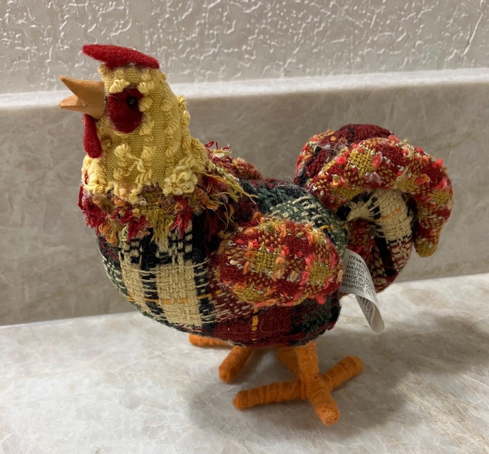 Decorative Plush Calico Tweed Stuffed Chicken Figure Creative Co-Op Approximately 6” tall Beak feels like plastic Non-smoking household...