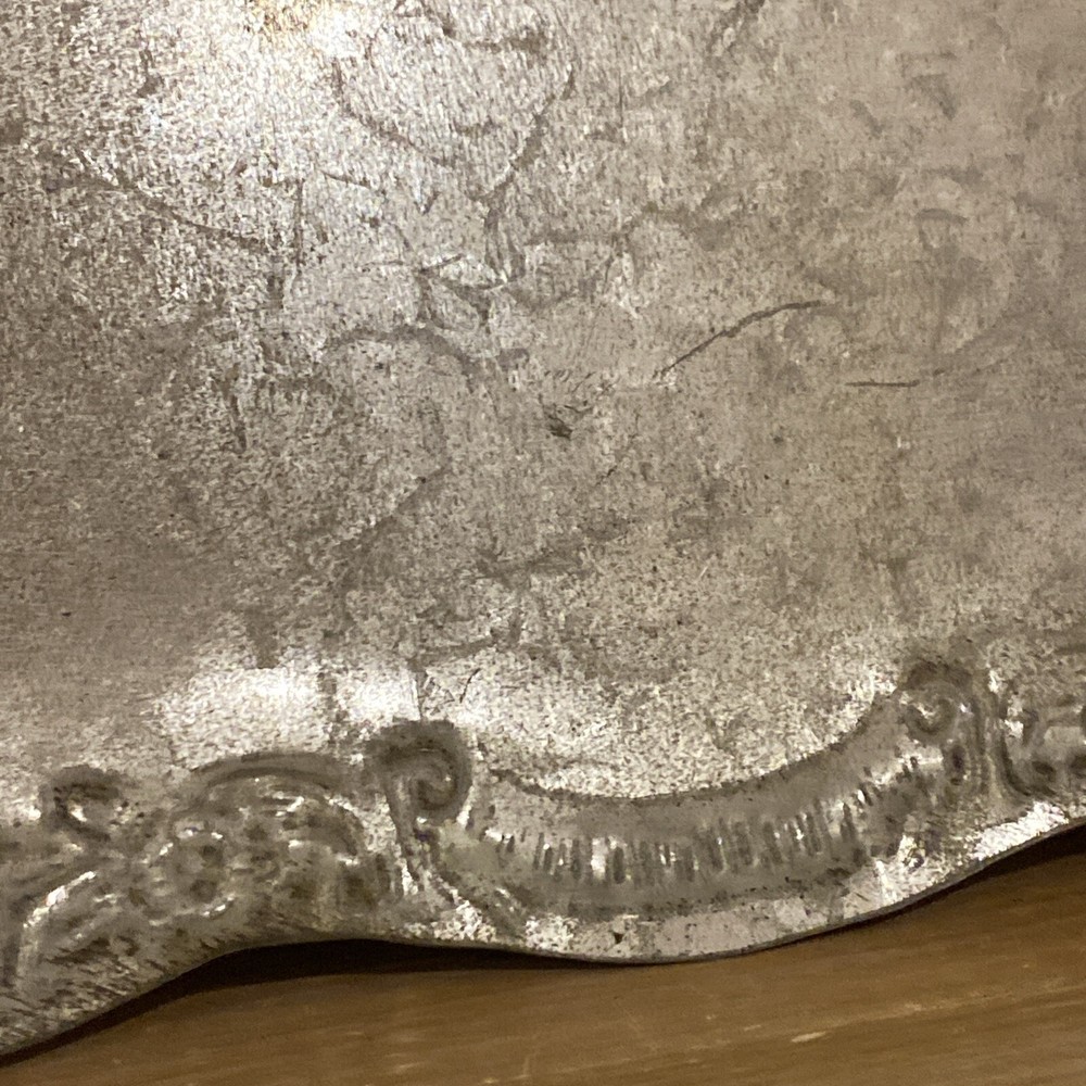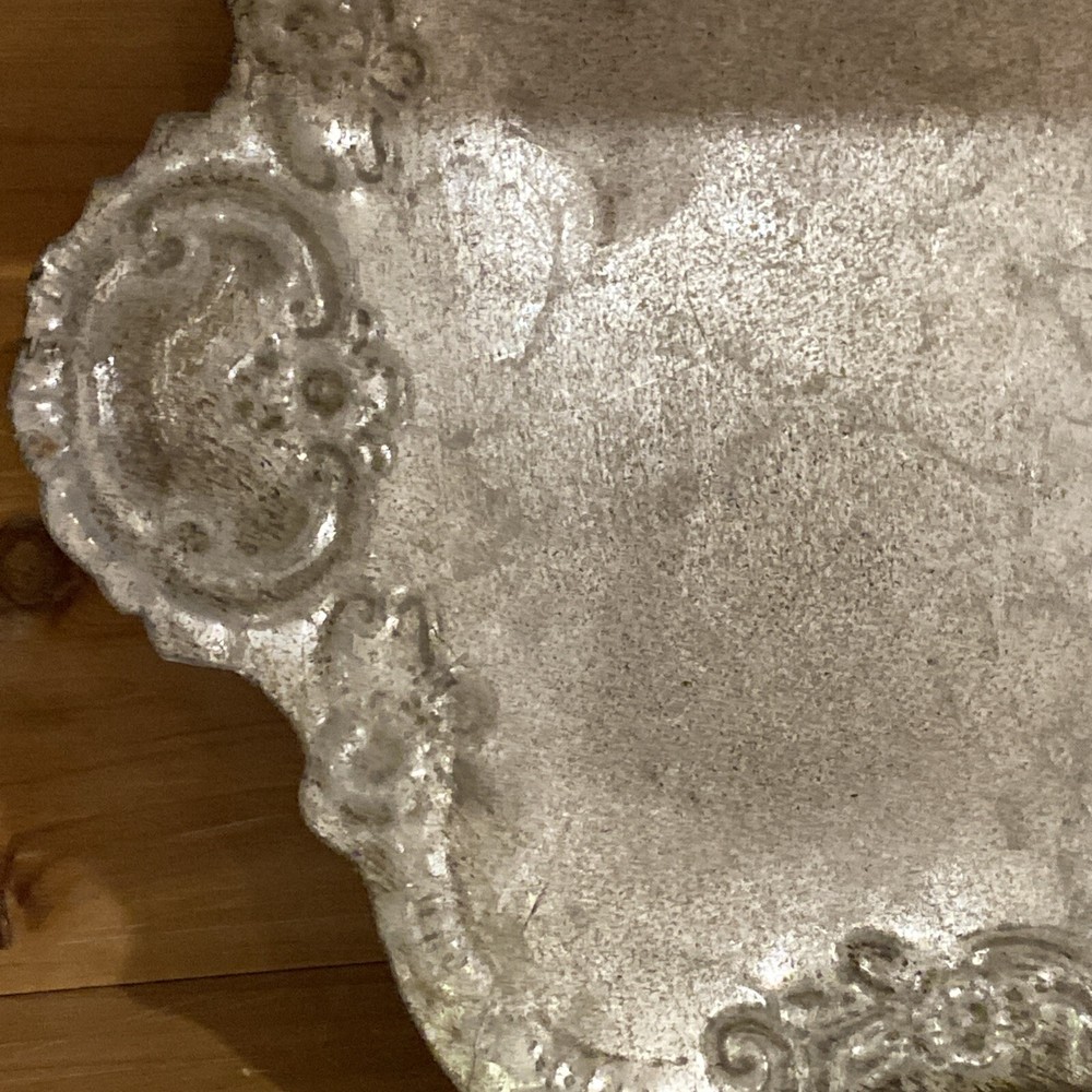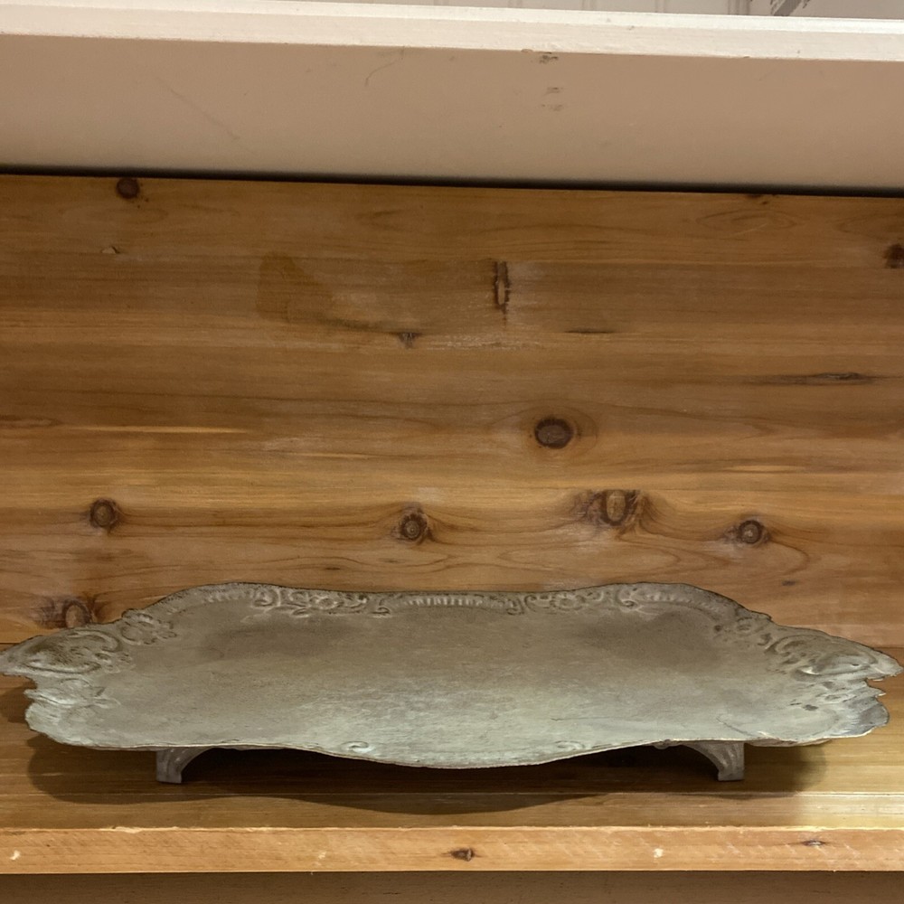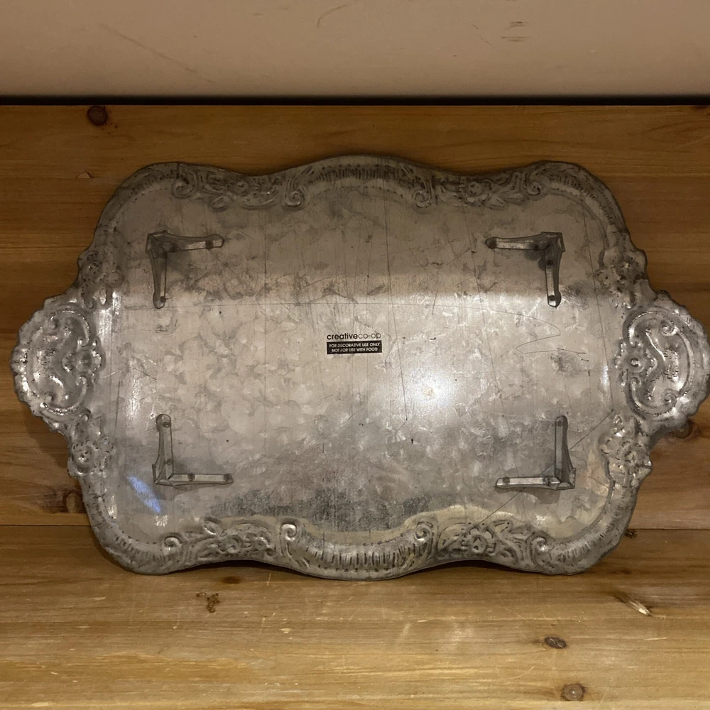 The Creative Co-Op Decorative Tin Metal Tray is a medium-sized rectangular tray with a distressed antique shabby finish in gray color. It is designed to bring a touch of vintage charm to any space, with a creative and unique style. The tray is made of metal and measures 17.75 inches in length and 11 inches in width, making it suitable for serving or displaying items in a stylish manner. Perfect for adding a rustic and elegant touch to your home decor, this tray is both functional and visually appealing. New without original box