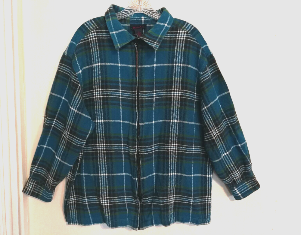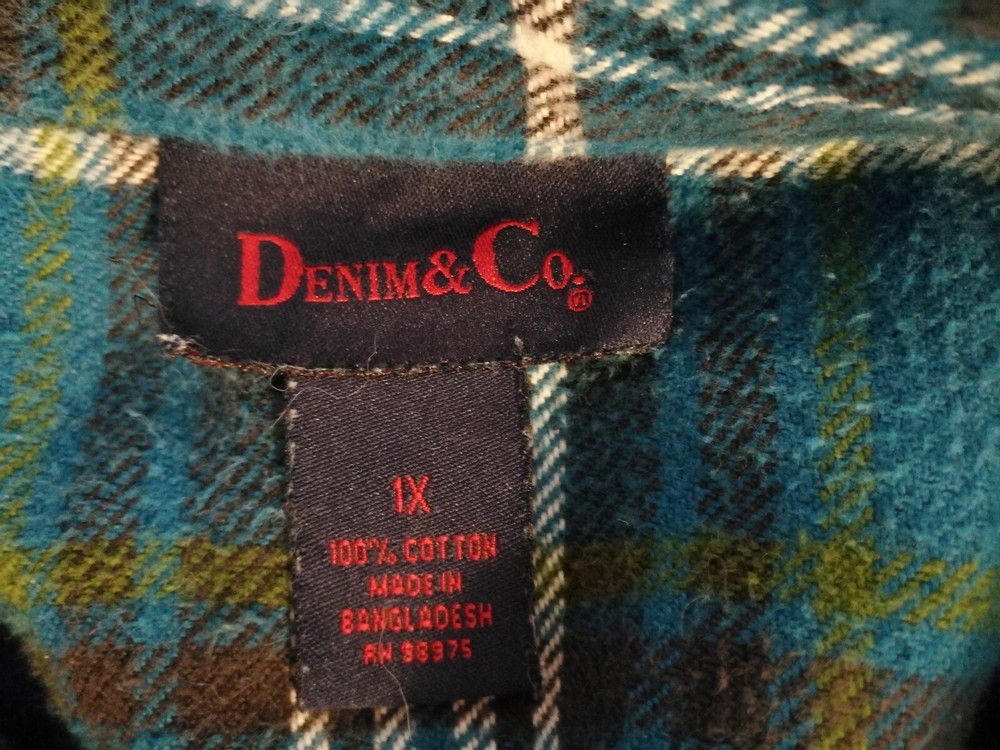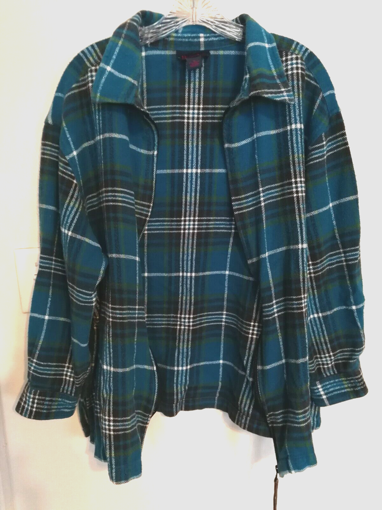 Flannel is in Excellent condition. See pics. This listing is for a Womens, Denim & Co, Full Zip, Long sleeve, Flannel Shacket. Plaid design. Blue, Black, White, & Yellow, in color. Size 1X, Plus. *Colors may vary, because of the lighting. -Pit to pit 25" -Shoulder sleeve hem to cuff 19.5 " -Length 28" Free shipping.