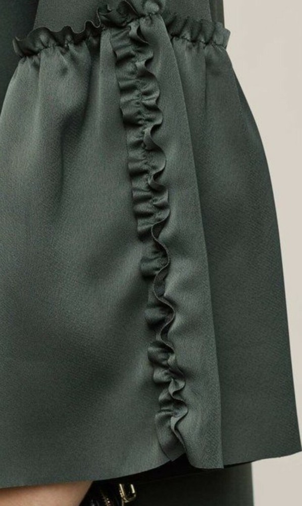 This blouse is absolutely stunning—the green color is rich and the ruffle sleeves add such a chic touch! The fit is relaxed but still stylish, perfect for dressing up or down. Even brand new, it’s a steal. The tiny flaw is barely noticeable—totally worth it for such a gorgeous designer piece. Love it!