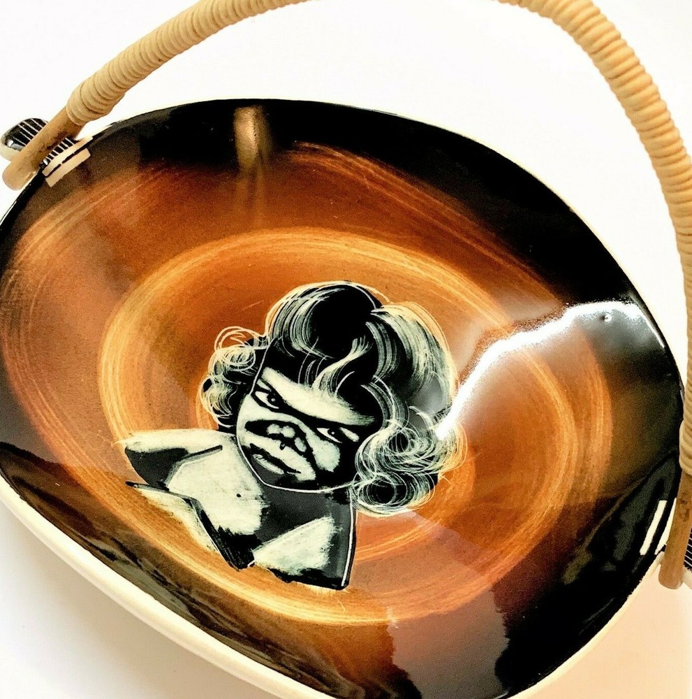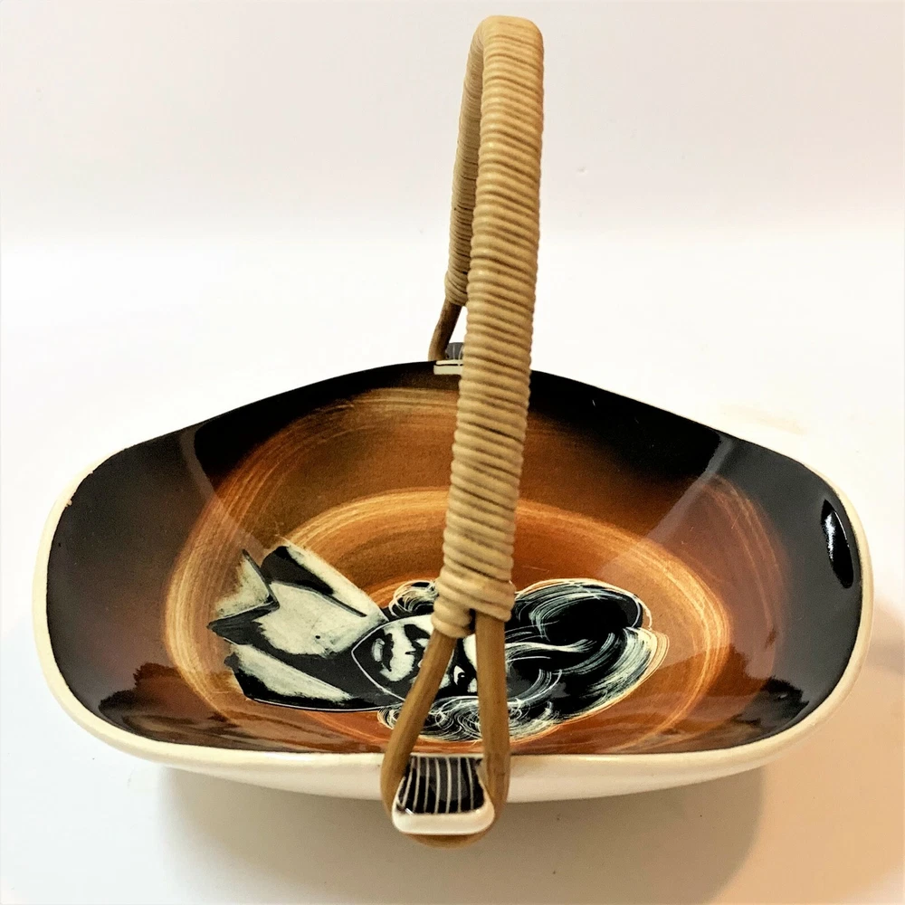 This charming Diana Pottery basket is a true mid-century gem! The organic Indigenous Child design gives it a unique Australiana flair, and the glossy glaze still shines beautifully. The wicker handle is detachable and in excellent condition, while the ceramic itself has no chips or cracks—just light, expected crazing. Perfect for displaying or light use, it’s a well-preserved piece of vintage artistry. The craftsmanship and care show in every detail. A lovely addition to any MCM collection!
