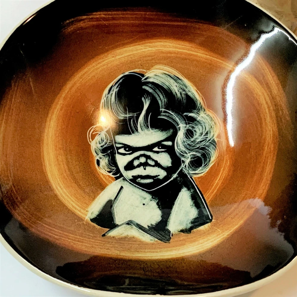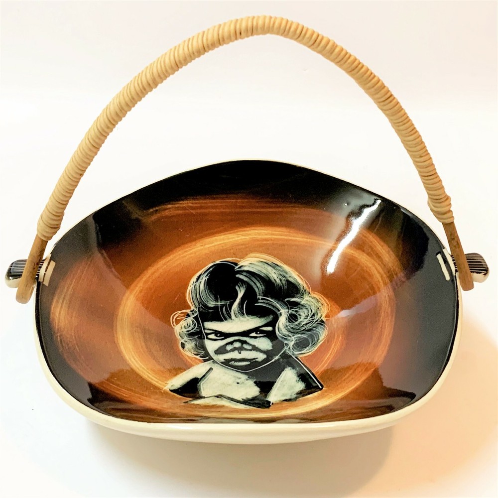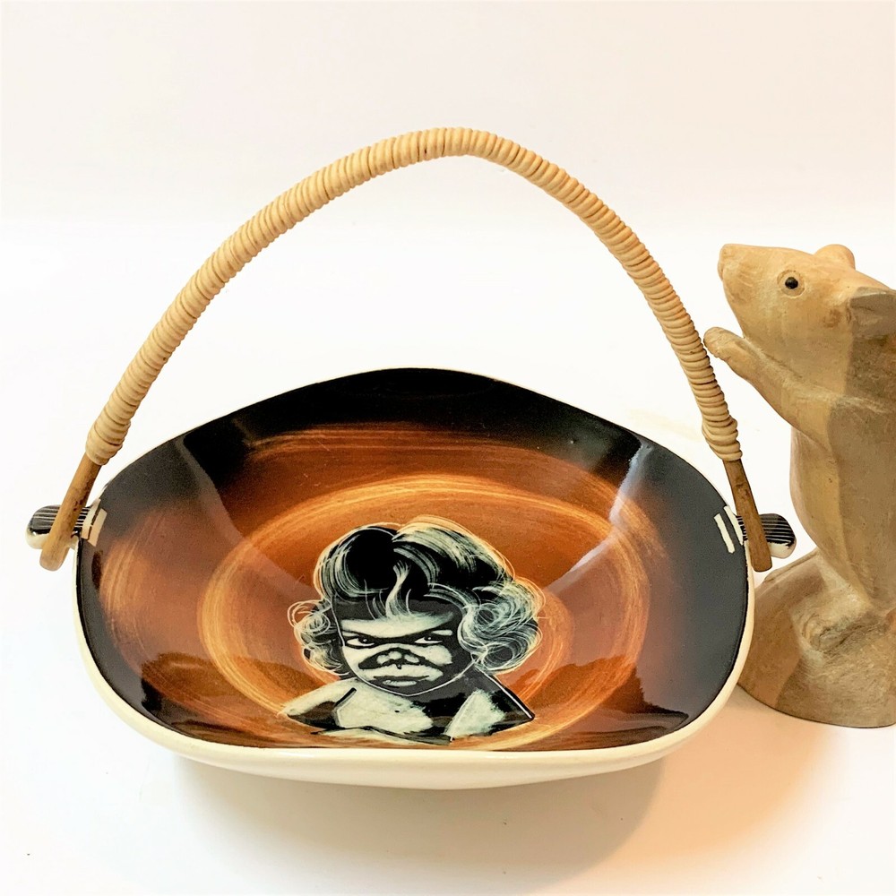 Vintage Diana Pottery, Australia Mid-Century INDIGENOUS CHILD Organic Shape Basket / bowl with Wicker Handle A fabulous mid-century piece of Australiana. Dimensions excluding handle: 16 W x 19 L x 4.5 H cm - approx Well cared for condition. No nibbles, chips, stains or cracks. Detachable cane handle in similar, excellent condition. Upper surface does show mild age-related crazing, as can be expected. Glossy sheen to glaze. Distinctive Diana marking to base. Please take time to view photos. Stored with care, posted with care. Postage cost includes tracking . If you like this item - serious offers are always seriously considered. Yes: if you wish, you pick up your item from 3108 (p.s. - Lucy the Mouse, at 12cm tall, is sometimes pictured to show scale of listed items. Lucy is not for sale.) This item will travel to you carefully packaged within a prepaid satchel which will have plenty of room for other items, so.... Why not take a little time to view my other odd assortment of items? - Most of my listings are presented in pre-loved condition (unless stated otherwise), and as shown in my photos, and which form an essential part of description. A pre-owned or used item will have very minor tell-tale signs of age and/or use, and is to be expected. Any major noticeable flaws will be highlighted in my description to the best of my ability. - Promise... Any queries will be answered same day. Any listing errors or omissions, please let me know. - My postage costs reflect materials & Australia Post & ebay /paypal commissions on postage. It is never my intention to gain profit from postage. PAYPAL & Bank Deposit Always Preferred . Payment within 3 days greatly appreciated, or simply communicate with me to reduce my concerns.