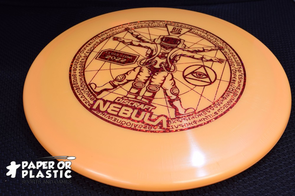 Discraft Big Z Nebula Mid-Range Disc Light Orange Ledgestone 2022 176 grams Hot Stamp Color: Shattered Red Speed: 5 Glide: 4 Turn: -0.5 Fade: 2 The Discraft Nebula was the Ace Race disc for 2008. It is an overstable midrange that was the first Buzzz OS, as it is a very dependable overstable midrange that will hold strong in the wind. Please note the appearance of some products may vary slightly if the quantity for the listing is greater than one.