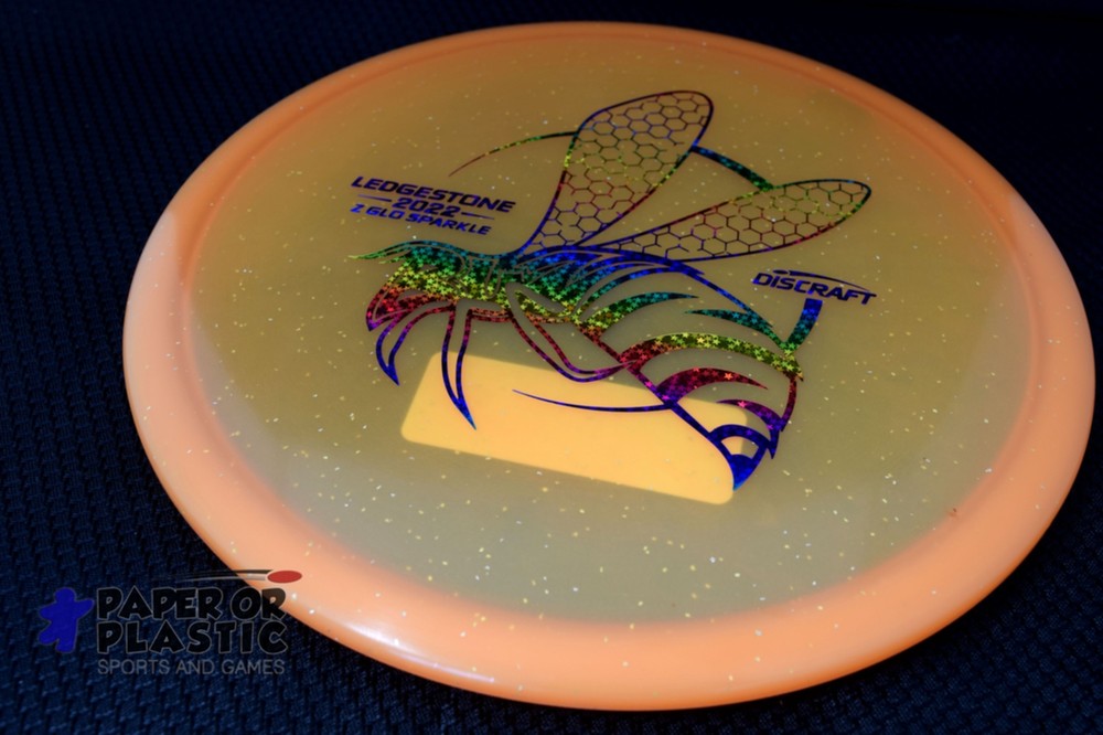 Discraft Glo Sparkle Buzzz Mid-Range Disc Orange Ledgestone 2022 177 grams Hot Stamp Color: Rainbow Star Speed: 5 Glide: 5 Turn: 0 Fade: 1 Best seller! More players agree: Buzzz is the best golf disc you can buy, period. It's an ultra-dependable, straight flying midrange that you'll reach for again and again. Throw it hard and versatile Buzzz will hold any line you put it on. Please note the appearance of some products may vary slightly if the quantity for the listing is greater than one.