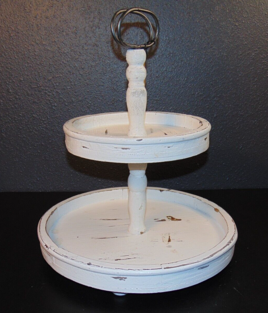 This charming 2-tier tray is both stylish and practical! The distressed cream wood and metal handle give it a perfect farmhouse vibe while the generous spacing on each tier fits decor, plants, or kitchen essentials beautifully. Love how easily it moves from counter to table—such a space-saver and a gorgeous addition to any room!