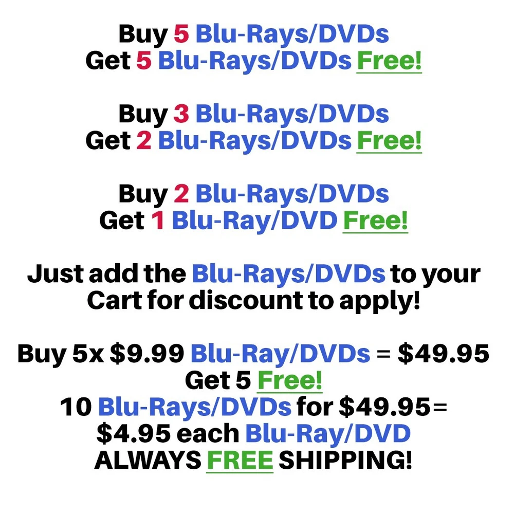 Every DVD I sell comes with DVD CASE and ARTWORK I do NOT sell DVDs WITHOUT DVD CASE and ARTWORK ALL DVDs are " Pre-Owned " unless they are stated " Brand New " and/or " SEALED " If DVD is listed as " Brand New or Sealed " it could be missing the slip cover, and small tears in original plastic may occur, majority have no issues. There are NO Digital Codes included in any of the DVDs/Blu-Rays. If it does come with a DIGITAL CODE consider yourself lucky! :) ALL DVDs are Shipped through USPS Media Mail . They will all ship same day. If not, they will ship the very next business day at latest. Most orders are delivered on-time of expected delivery schedule. But, there has been cases where USPS Media Mail is slower than expected and can take longer. Majority ship on time. ASSUME it DOES NOT come with Slip Covers, Majority DON'T have slip covers. If it comes with a slip cover consider yourself lucky! :) DONT FORGET and SAVE! Buy 2, Get 1 FREE! Buy 3, Get 2 FREE! Buy 4, Get 6 FREE!