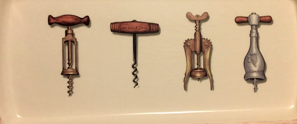 Dolomite Off-White Ceramic Plate/Tray w/Corkscrew Image By Creative Co-op. New with original tag on bottom price $19.99. Measures 13 1/2" long x 6 1/2" across. There is some crazing on dish, maybe there to look old!