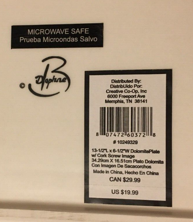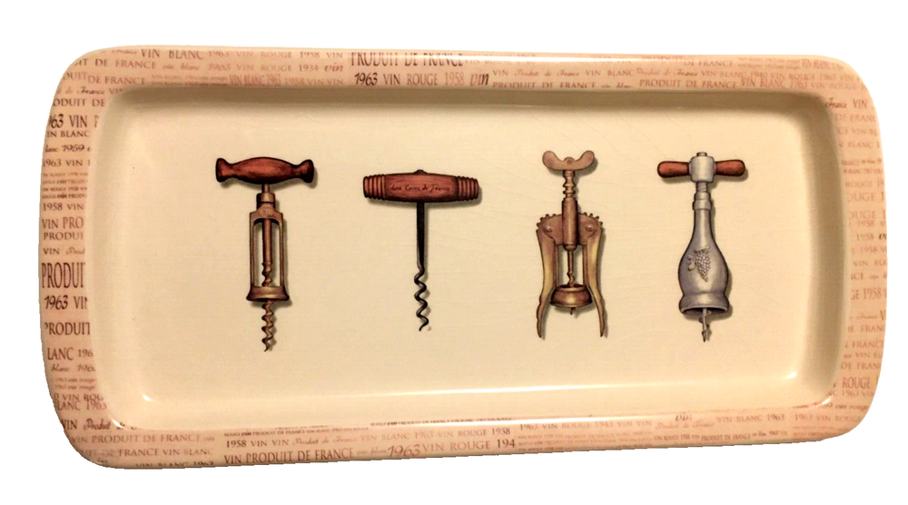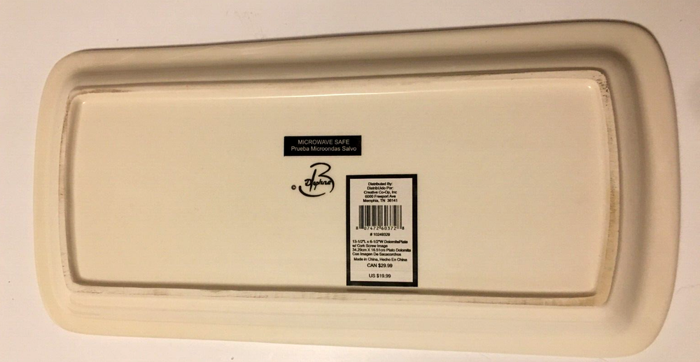 Dolomite Off-White Ceramic Plate/Tray w/Corkscrew Image By Creative Co-op. New with original tag on bottom price $19.99. Measures 13 1/2" long x 6 1/2" across. There is some crazing on dish, maybe the...