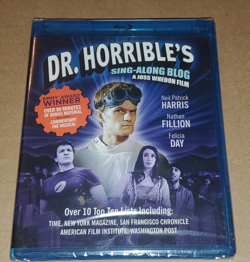 100% NEW, FACTORY SEALED The product is a Blu-ray Disc of the movie "Dr. Horrible's Sing-Along Blog," directed by Joss Whedon and starring Felicia Day, Neil Patrick Harris, and Nathan Fillion. Released in 2010, this musical comedy falls under the sub-genre of Musical and Performing Arts. It is rated NR (Not Rated) and is in English language. With a cult following, this film is a unique blend of humor, music, and storytelling, making it a must-have for fans of Joss Whedon's work and musical enthusiasts alike.