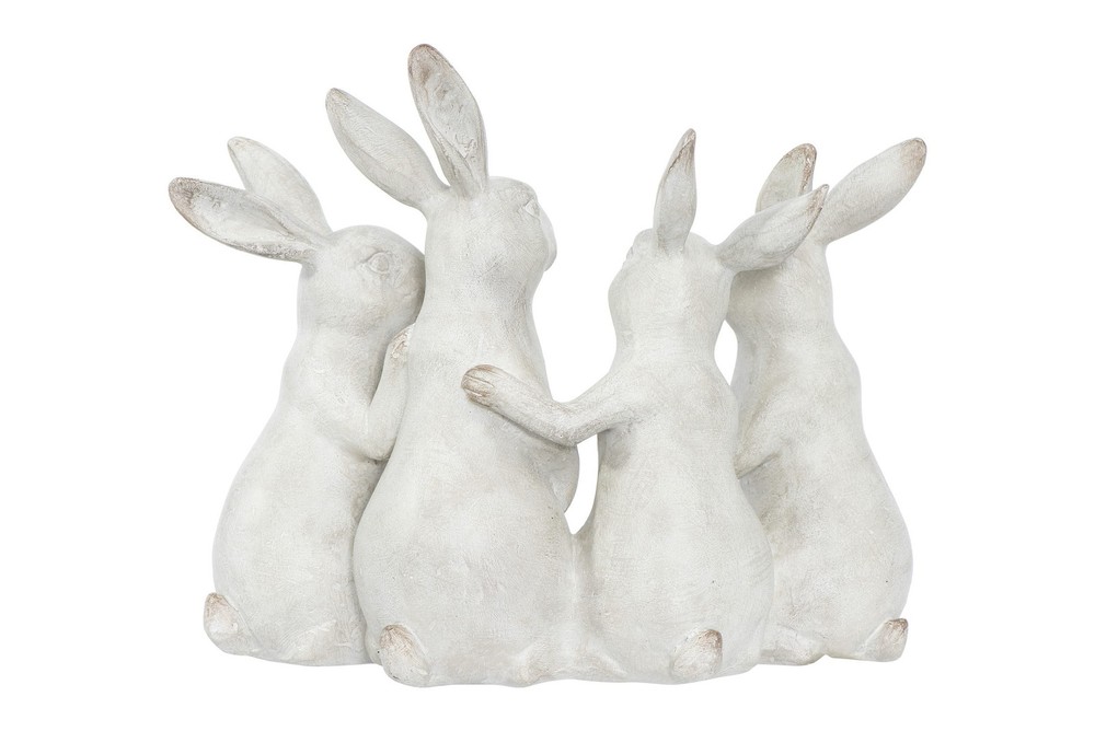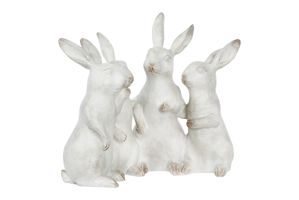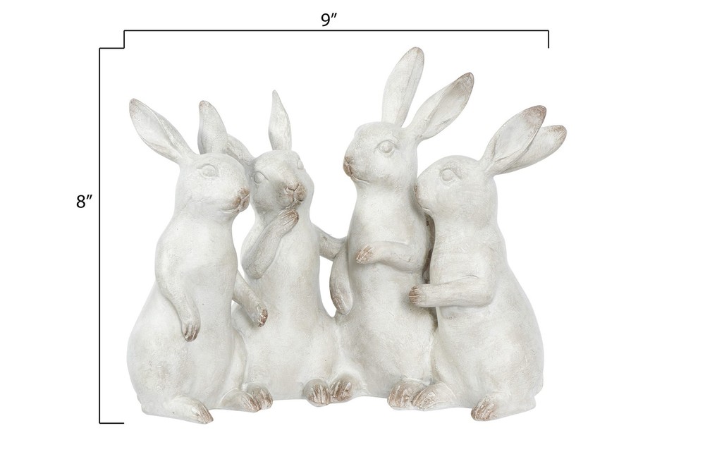 Interesting figurines are the spice that complete a room décor. They can be added to a shelf, placed on top of a mantel or next to other objects. Add these adorable bunny rabbits to any décor for a fun-loving accent. At Easter, place in the middle of a table with colored basket grass surrounding it. Then finish off the centerpiece with a few decorated eggs spaced around all sides of the rabbits. Fun-loving rabbits are ideal for a nursery Create the perfect centerpiece at Easter with rabbits, grass and decorated eggs Place in any room for a fun-loving accent 9. 5"L x 5"W x 8"H
