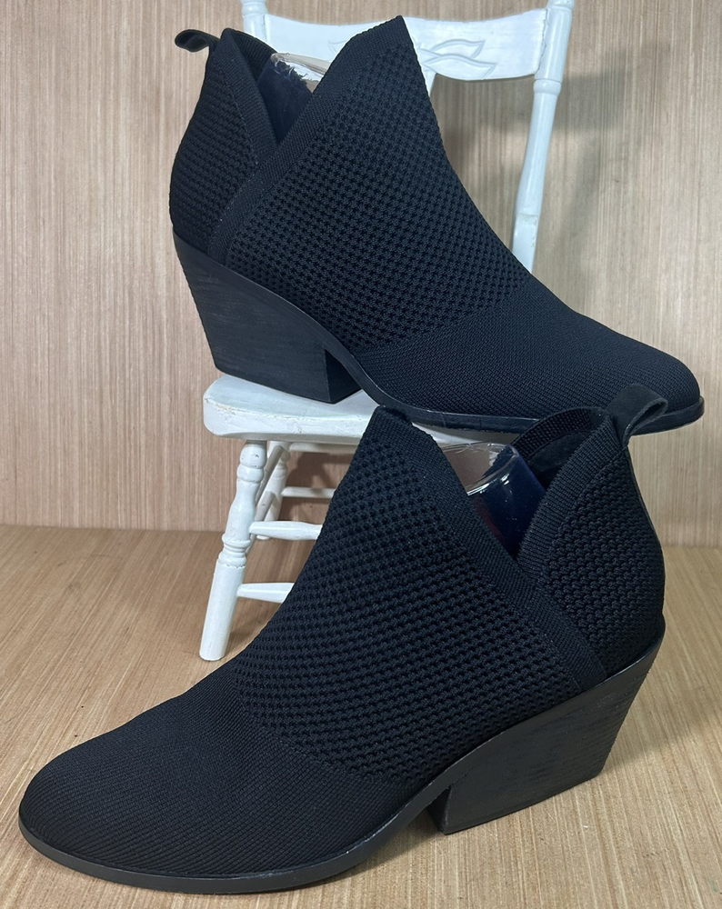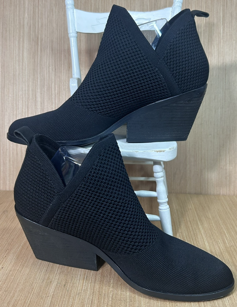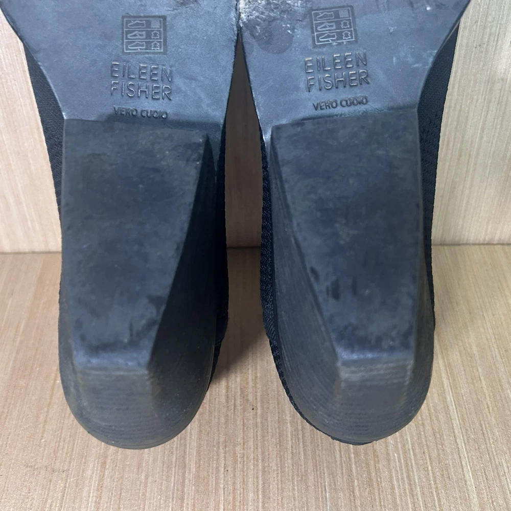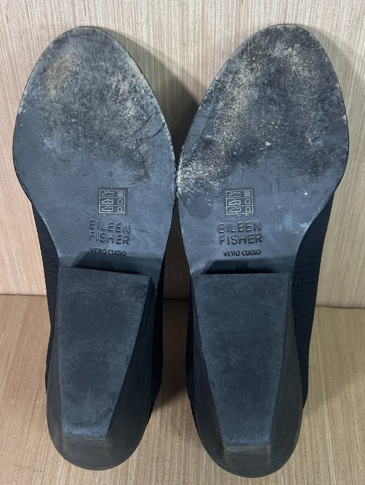 EILEEN FISHER JOSS Stretch Knit Boots Black Block Heel Women's Shoes Size 9.5 Excellent Pre-Owned Condition - Only slight signs of wearing. Does not diminish the overall appearance of the item. A stretch-knit upper made from recycled fibers enhances the modern intrigue of this versatile block-heel bootie. 3" heel 3 1/4" shaft Pull-on style Leather and recycled polyester upper Leather lining heel and sole PLEASE TAKE TIME TO LOOK AT THE PICTURES This is the exact item that you will receive ++ All shoes are carefully packaged & shipped ASAP ++ Shoes photographed are exactly what you are getting ++ We list daily so make sure to give us a follow HAVE AN AMAZING DAY!!!!!!!