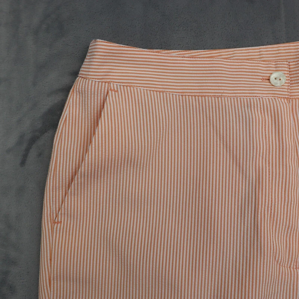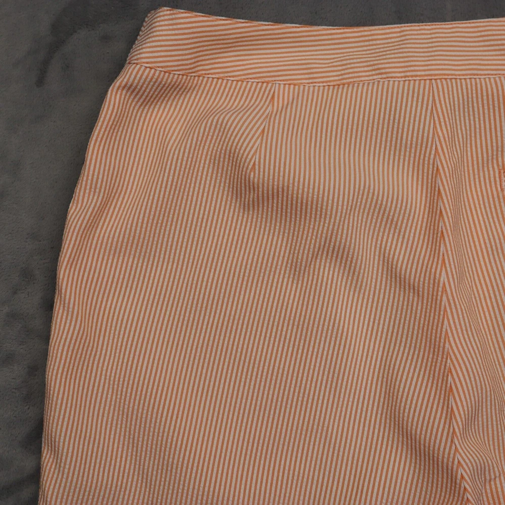 These pants are a fantastic find! The orange pinstripe adds a fun pop of color, and the mid-rise fit is super comfortable. The slash pockets are a stylish touch, and the capri length is perfect for warmer days. They fit true to size and feel well-made. Great condition—definitely worth it!