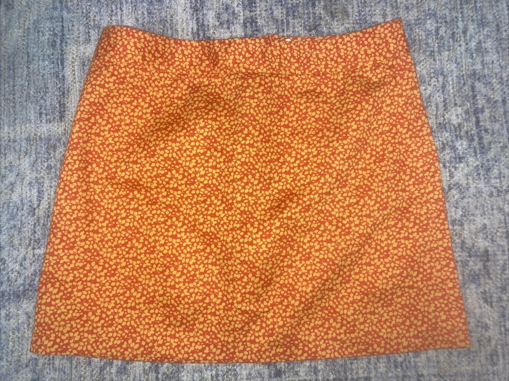 EUC J. CREW ORANGE FLORAL PRINT STRAIGHT SKIRT SIZE 8. Measurements Waist 30” Length 16”