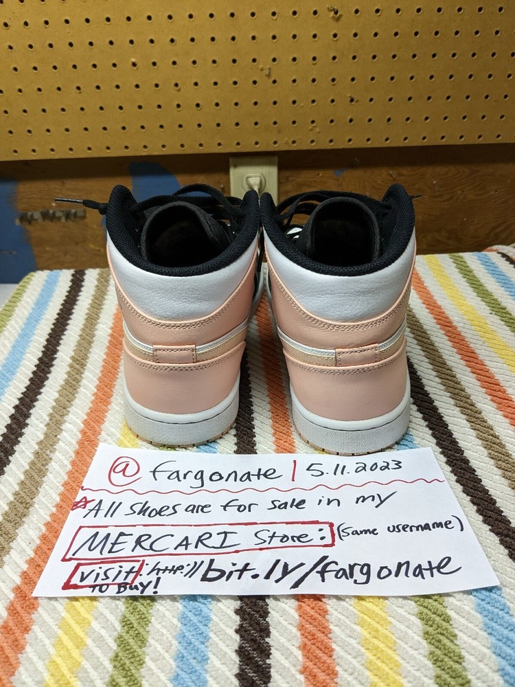 The Air Jordan 1 Mid 'Crimson Tint' enlivens the midtop with a pastel burst of color. Reminiscent of the 'Crimson Tint' Air Jordan 1 High OG from 2019, the sneaker carries a white leather upper with a black toe and contrasting hits of Arctic Orange on the Swoosh, heel overlay and rubber outsole. A woven Jumpman tag is stitched atop the black nylon tongue, while a matching black Wings logo is stamped on the lateral ankle. Lightweight cushioning comes courtesy of an Air-sole unit nestled in the heel of the durable rubber cupsole.