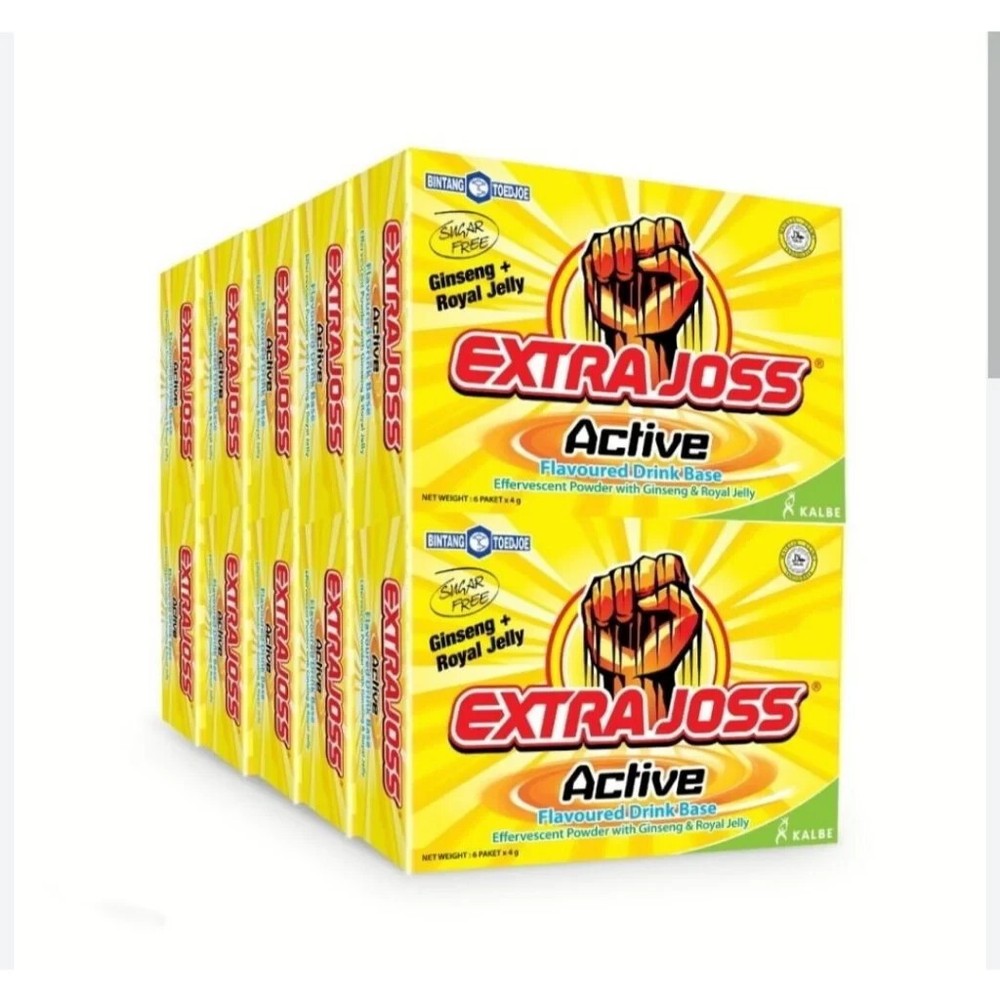 EXTRA JOSS - 10 Boxes (60 SACHETS) HALAL & FAST SHIPPING This Buy It Now includes : EXTRA JOSS - 10 Boxes (60 SACHETS) HALAL & FAST SHIPPING Product Information : NOTE: The pictures/packaging may differ from the actual item received due to manufacturer's new packaging or different regions packaging but the quality and content remain the same. Product Specifications : EXTRA JOSS - 10 Boxes (60 SACHETS) HALAL & FAST SHIPPING Features & Benefits Product Description Extra Joss is designed for an active lifestyle. It will recharge your working day, and is abrilliant pre-sport or workout power up. The tropical fruit flavour tastes great and is SUGAR FREE The ‘Active‘ ingredients work in synergy to assist metabolism, stimulate confidence, increase physical endurance, overcome fatigue, sharpen the senses, enhance reaction speed… and for some, it helps lift hangover haze. There are six single serve sachets per pack. Each sachet makes a 300ml effervescent energy drink. Added to a glass or bottle of water, it dissolves rapidly, and is ready to drink in seconds. Dilute to your own taste. It’s the real thing Extra Joss is formulated using Ingredients found in other leading RTD energy drinks and includes: Caffeine, Taurine, Thiamin, Riboflavin, Inositol, Niacin, and other B vitamins. It’s Sugar Free and contains Ginseng and Royal Jelly. 100% GENUINE, NEW AND IN STOCK