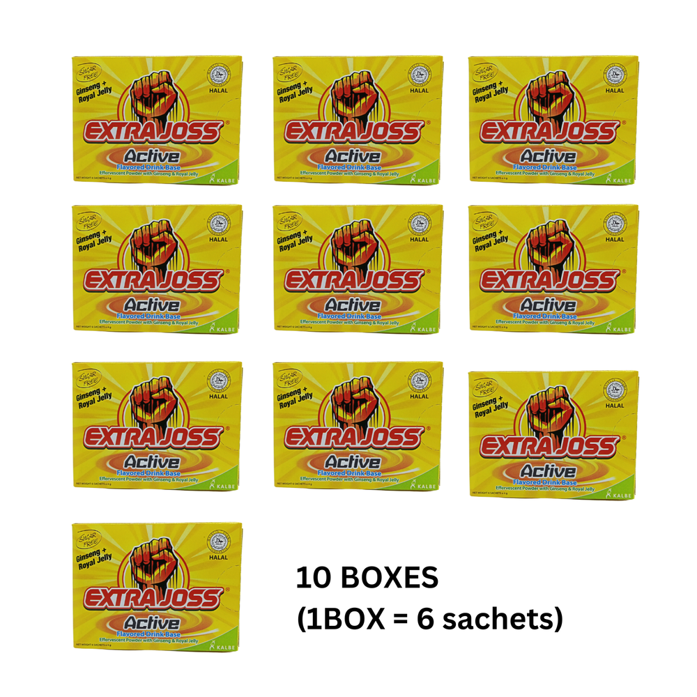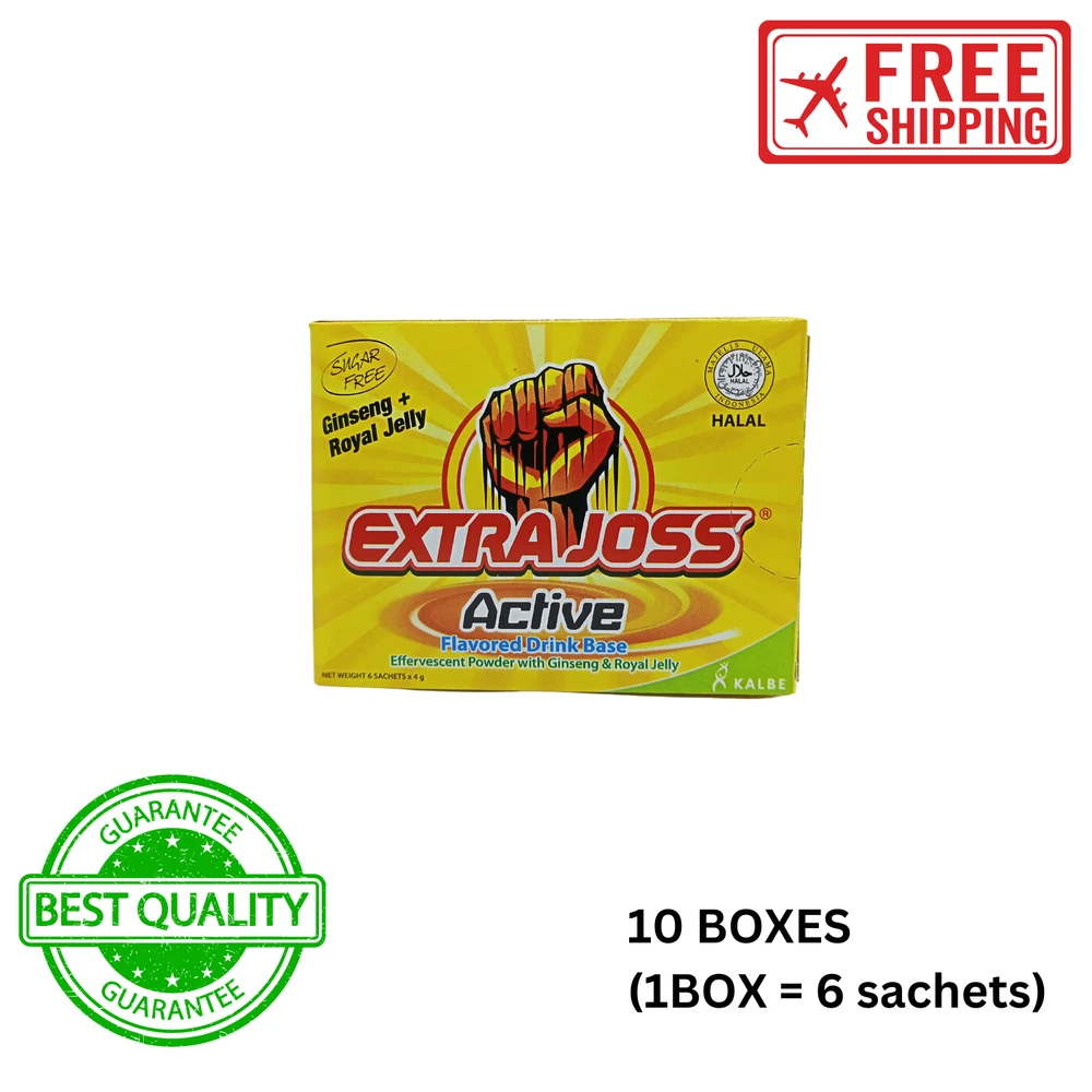 Free eBay listing template designed by dewiso.com EXTRA JOSS ACTIVE FLAVOUR (10 BOXES) Extra Joss is an energy drink that’s designed to give you a quick and effective boost of energy and focus. It comes in small, convenient sachets, making it easy to carry and consume anywhere, without the need for refrigeration. Extra Joss designed to give you a quick and effective boost of energy and focus. It comes in small, convenient sachets, making it easy to carry and consume anywhere, without the need for refrigeration. Extra Joss is popular among people who need a quick energy boost, like athletes, students, office workers, and those with active lifestyles.Extra Joss is popular among people who need a quick energy boost, like athletes, students, office workers, and those with active lifestyles. Features Caffeine : Known for its stimulating effects on the central nervous system, boosting alertness and energy levels. Taurine : Often included in energy drinks for its potential to improve athletic performance and reduce fatigue. B Vit's : These vit play various roles in energy metabolism and are often included in energy supplements. Inositol : It's believed to have various health benefits, including promoting mental health and reducing anxiety. Ginseng : Known for its potential to improve energy levels, cognitive function, and overall well-being. Serving Suggestion Dilute 1 sachet in 300ml cold water Storage Condition Store below 30 degree celcius and keep away from direct sunlight and humidity. Packaging 10 boxes Extra joss (1box contains 6 sachets) CONTACT US We can be contacted at any time through eBay messages if you have any questions, comments or product requests. We will respond to you within 24 hours and do our best to help you out! We encourage our customers to contact us with any questions or concerns! We'd like to be sure you are completely satisfied with your purchase ;) Handling Time One to two business day after received payment. Every consignment will be provided with tracking number. Saturday, Sunday and Malaysian Public holiday are exclude as a working days. Shipping Policy Item should reach your address within 2-4 weeks depending on country/region, subject to custom clearance and countries destination. All our orders are shipped with proper packing material. Please take note that your order will be packed with bubble wrap for extra protection. We are committed to offering high-quality products and excellent customer service. If you are considering leaving any neutral or negative feedback, please do contact us first. We are here to assist in resolving any issues, so we kindly ask that you refrain from leaving any neutral or negative feedback before getting in touch with us. We want your shopping experience with our eBay store to be a positive one. Happy shopping! ;)