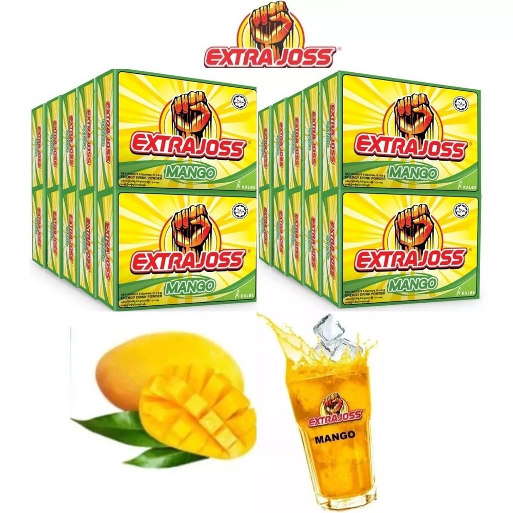 Product Description 4 grams x 6 sachet x 10 boxes (60 sachets) Extra Joss is a refreshment drink that give fruity taste, with additional benefit of Power from Extra Joss endorsement - Boost Body's Immune System - Royal Jelly Helps Enhance Immune System - With Vitamin B6,B9 and B12 Directions - Take and tear 1 sachet of Extra Joss - Pour the powder in to glass - Pour cold water (300 ml) to the glass - The powder will dissolved immediately - Serve it immediately while chilled Ingredients - Compositions, Mango& Extract 150 mg, Vitamin B1 1.5 mg / 1.1 mg, Vitamin B6 2 mg, Vitamin B12 2.4 mcg/2.0 mcg, Taurine 100 mg, Caffeine 50 mg, Sugar, Aspartame, Citric Acid, Royal Jelly Caution - Not advisable for children below 12 years old and pregnant women. Storage Instruction - Store below 30°C Nutritional Information (Per 100g) - Energy: 295 cal - Total Carbohydrate: 69 g - Total Sugar: 0 g - Protein: 4.9 g - Fat: 0.9 g - Vitamin B3: 375 mg - Vitamin B6: 50 mg - Vitamin B12: 60 mcg HANDLING : Processed & shipped within 1-3 Business days after full payment Please provide complete full address and contact for shipping purposed to ensure all buyer get items safely ( Shipping out everyday until Saturday, Sunday and Public Holidays are not delivery days) TRACKING NUMBER : Tracking number is provided and can be trace by ebay system DELIVERY : • Shipping by ECONOMY SHIPPING • Estimation ( ETA ) to United States ECONOMY SHIPPING (11-23 DAYS) depending SOP Pandemic every country • If you didn't received your item within 30 days please inform us, we will check detail for you • contact us if you have any questions regarding our items • We are happy to exchange positive feedback, please leave us 5 Star positive feedback ratings and you will received positive feedback from us too. Returns We offer 30 days money back guarantee for the item(s) if you are not satisfied and it is returned in mint/unopened condition. Shipping fees paid for delivery of the item to buyer are non refundable and would be deducted from the amount to be refunded to buyer. Please email us before shipping. Shipping and handling cost for the return is to be borne by the buyer.