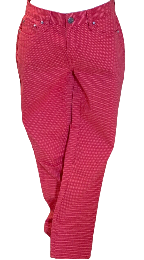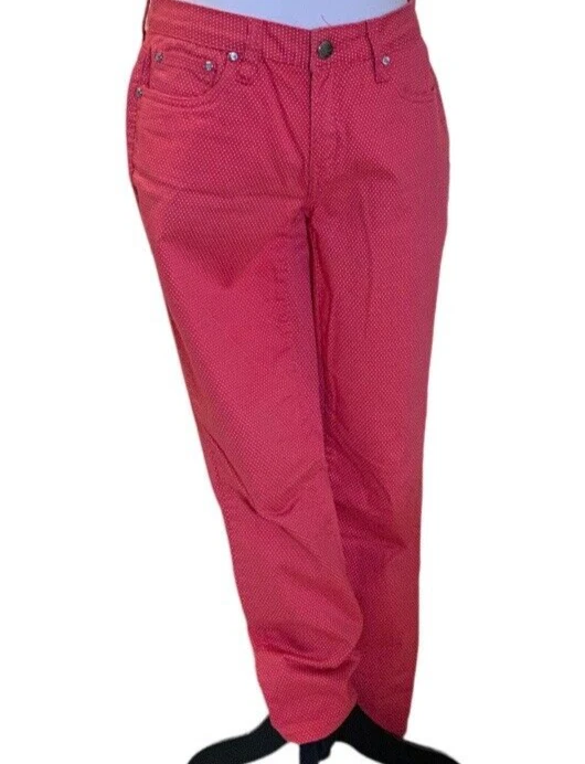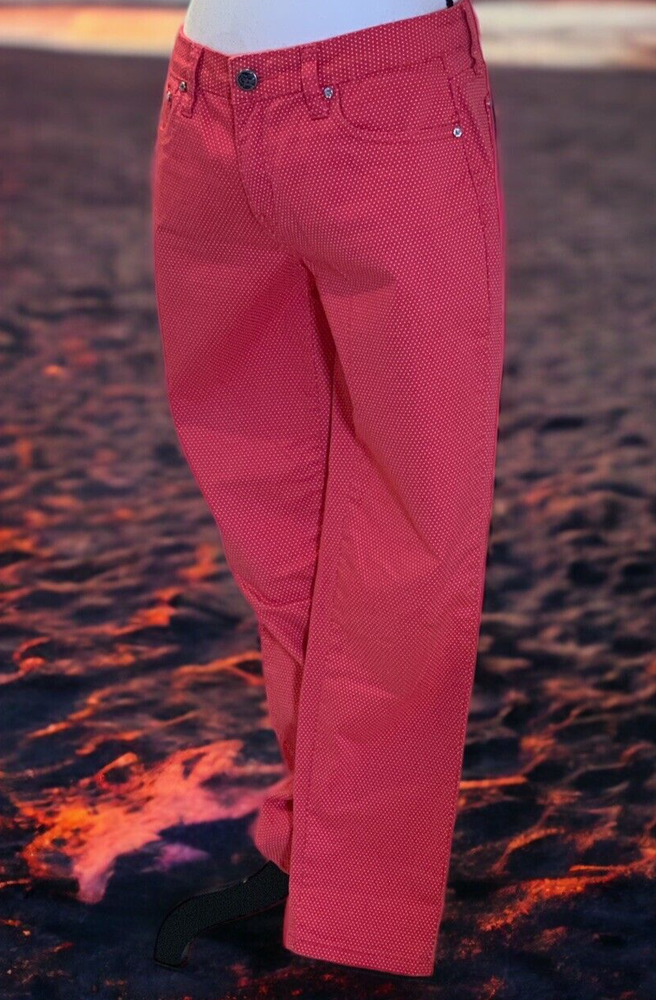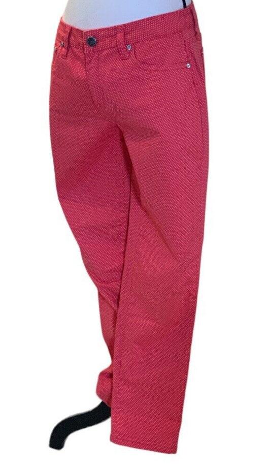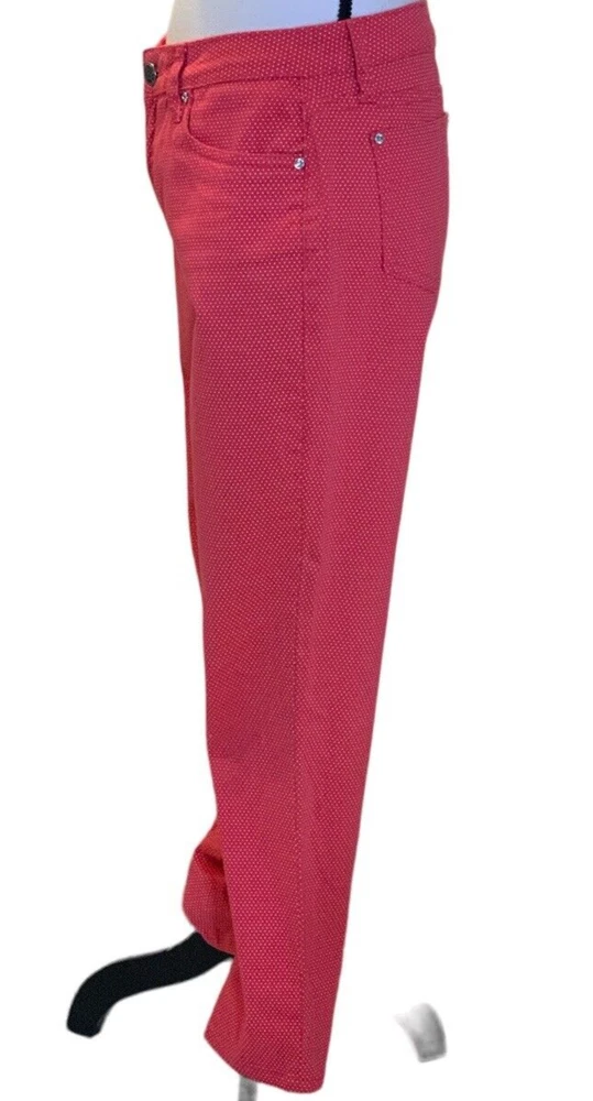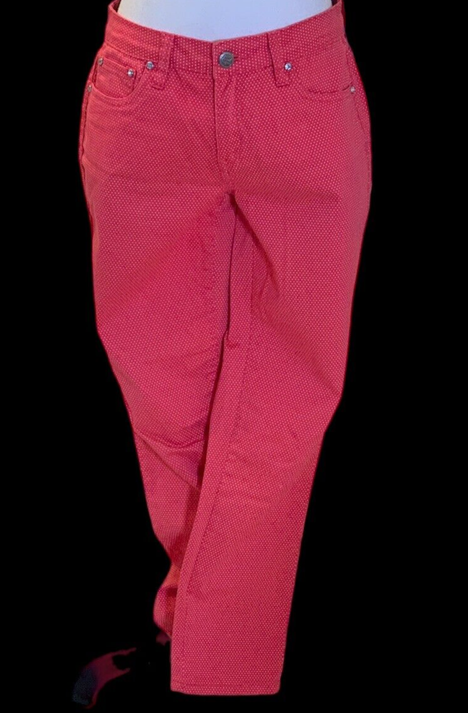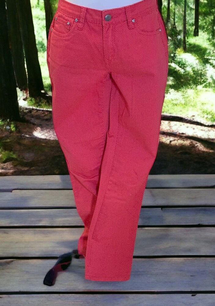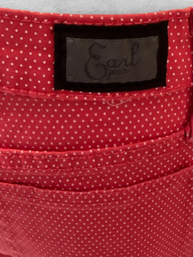 Earl Jean Womens Skinny Jeans Size 8 Orange Polka Dot Good pre owned condition. No visible stains, rips or holes. Add a pop of color and pattern to your wardrobe with these stylish Earl Jean skinny jeans in vibrant orange with playful polka dots. The mid-rise waist and slim fit create a flattering silhouette, while the zip closure adds a touch of edge. Made of quality denim fabric, these jeans are machine washable for easy care. Perfect for any season, whether it's winter, summer or spring, these jeans are a versatile addition to your wardrobe. Measuring at 28.5 inches inseam, they are designed to fit regular size 8 women. Flat measurements approx: Waist: 15 1/2" Rise: 19" Inseam: 28 1/2" Length: 38"