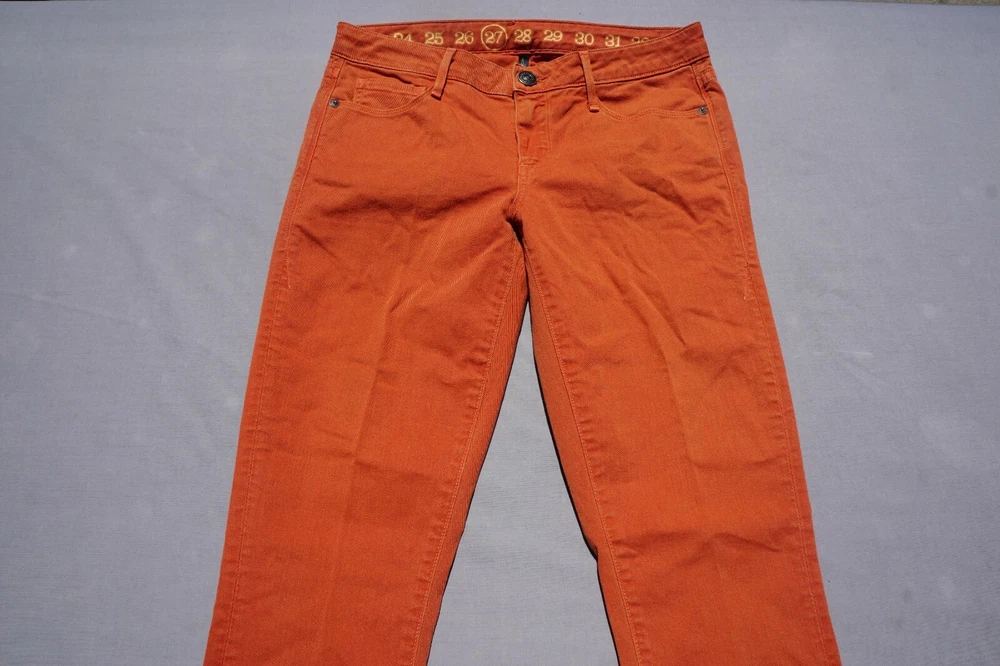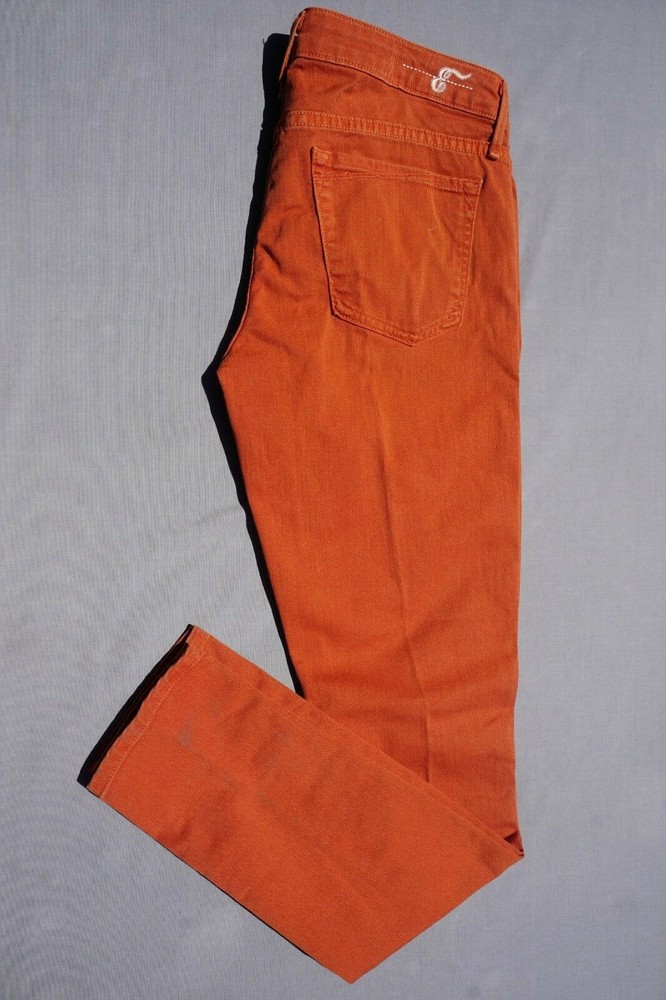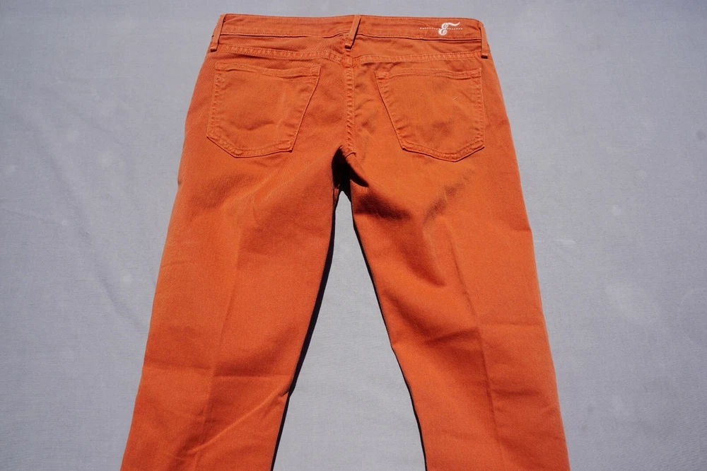 This awesome pair of skinny jeans by Earnest Sewn comes in a standout and appealing burnt orange. They are in great pre-owned condition with some standard light wear and minor scuffing at the cuffs that looks like it will easily come out in the wash (please see photos). The jeans display no noted stains, rips, holes, or any other major defect of any kind. They look amazing and appear to have a ton of life left in them! We encourage you to use the zoom feature on our photos and we think you'll agree that this beautiful pair of jeans will make an excellent addition to your wardrobe! Please let us know if there is an angle or feature not represented that you would like to see prior to purchasing. Thanks for looking! Measurements Waist - 14.5" Straight across top of waistline Inseam - 30.5" From seam in saddle to end of leg Cuff - 5" Straight across ankle opening of leg Rise - 8" From seam in saddle to top front of pant Length - 38.5" From top of waistline to bottom of leg Manufacturer sizing can vary, and we measure our clothing prior to auction in order to give an accurate indication of size and avoid wasting anybody's time. Please take the time to measure a piece of similar clothing that you know fits you and compare to our own measurements prior to bidding. Don't hesitate to contact us if there is a measurement not included that you would like us to preform for you. Thank you! Items are tested for obnoxious odor when coming in, and then kept in a smoke/pet free environment until shipped. They are handled and inspected on 3 separate occasions; once at acquisition, once while taking measurements, then a final time when manipulating for photos. We make every effort to detect and disclose all defects prior to accepting offers on any item. That said, most of our inventory is pre-owned clothing, and defects will slip through unnoticed from time to time. Please take the time to inspect all of our photos prior to bidding. We try to display all angles and features in detail so you can assure yourself of the condition prior to bidding. Aside from showcasing our items, we like to use photos as another form of disclosure. If a defect slips through both our screening process, and your photo inspection, then be assured that it was an honest mistake and we will do what is necessary to make it right and keep you happy. Please message us prior to opening a case or leaving negative feedback and allow us the opportunity to do so. We only accept payment through Paypal. All items will ship within one business day of payment being received. We are new to online selling, but plan to build a business through return clients as a result of outstanding customer service. Please bid with confidence and don't hesitate to let us know if there is anything you can think of that would make your buying process easier or more enjoyable. Thank you again for taking the time to look at our item!! G047