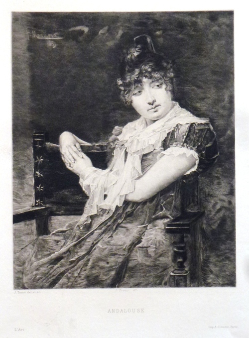 Joss TORNE (XIXème siècle) Andalouse, Eau forte sur vergé 420 x 290 mm (toute la feuille) 260 x 210 mm (à l'image) Belle épreuve...