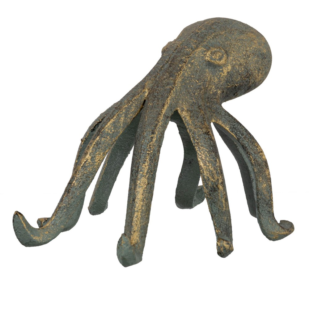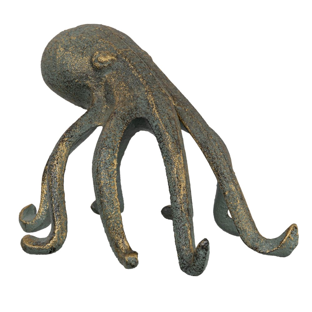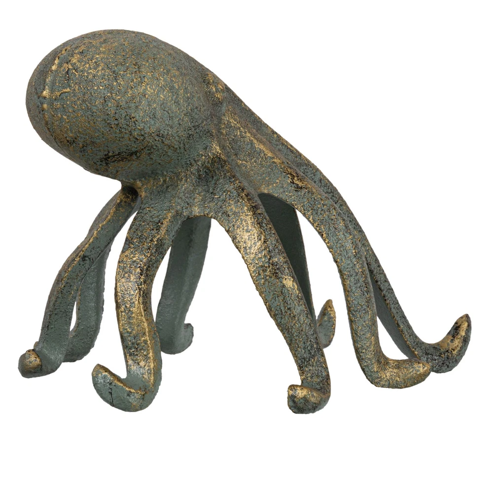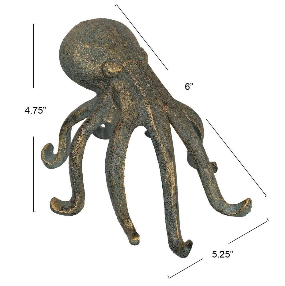 Love this fun and functional octopus figurine! The intricate cast iron details and patina finish give it a stylish vintage look, while its clever design conveniently holds my phone or tablet in the kitchen. Solid and well-made, it sparks conversations and keeps my hands free. A perfect quirky accent for any countertop or shelf!