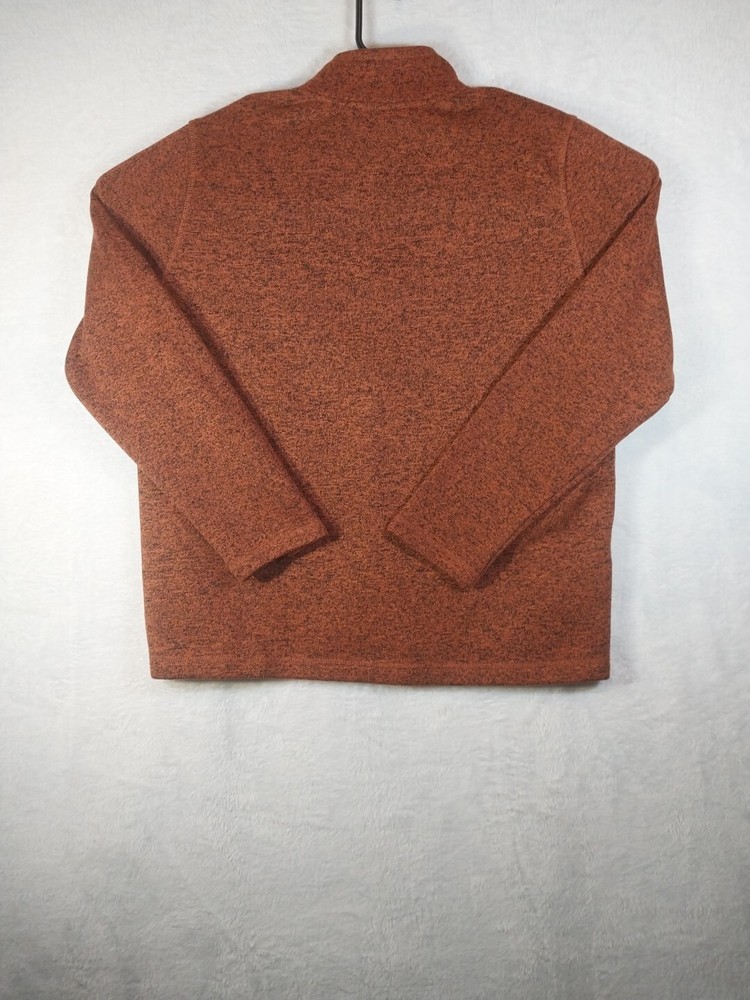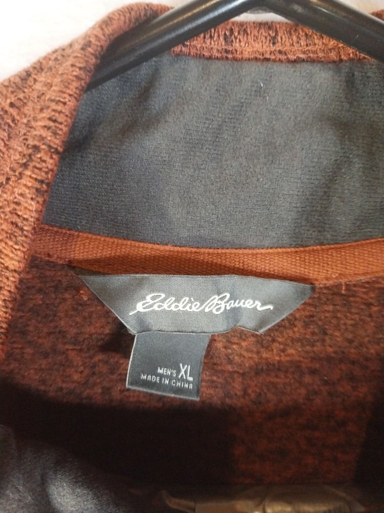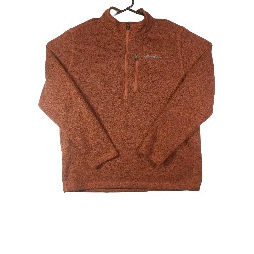 This Eddie Bauer jacket is a versatile addition to your wardrobe. With a mock neck collar and 1/4 zip closure, it's perfect for any occasion, whether you're out for a walk, playing a round of golf, or hiking in the mountains. Made from soft polyester fleece, it's comfortable and warm, making it a great choice for fall, winter, and spring.The orange and black fleece features a classic design, with a logo accent and a mid-length cut. It's machine washable and easy to care for, making it a practical choice for any busy man. Whether you're headed to work, a party, or the great outdoors, this Eddie Bauer jacket is a stylish and functional choice.