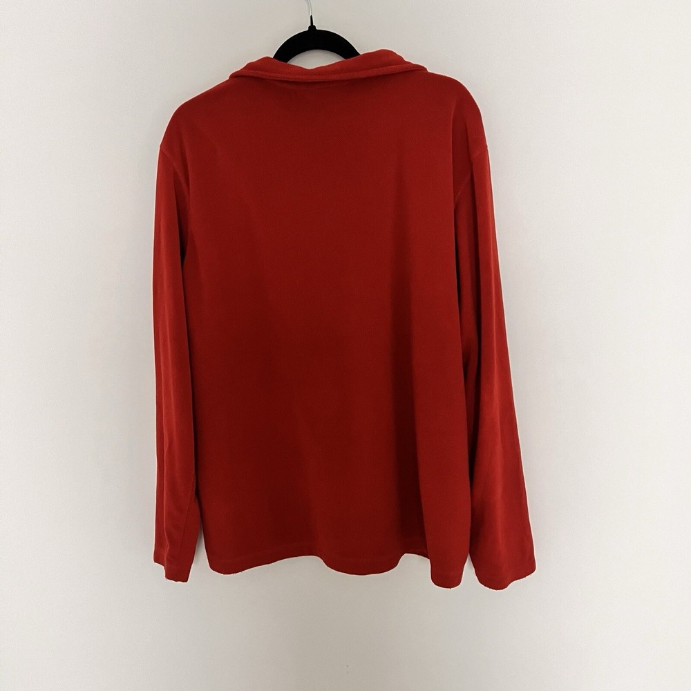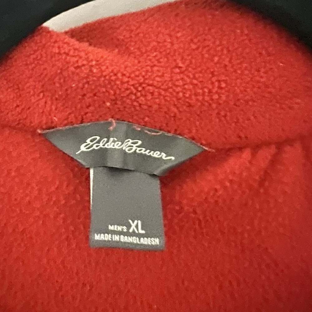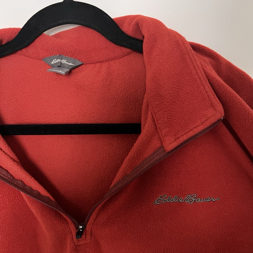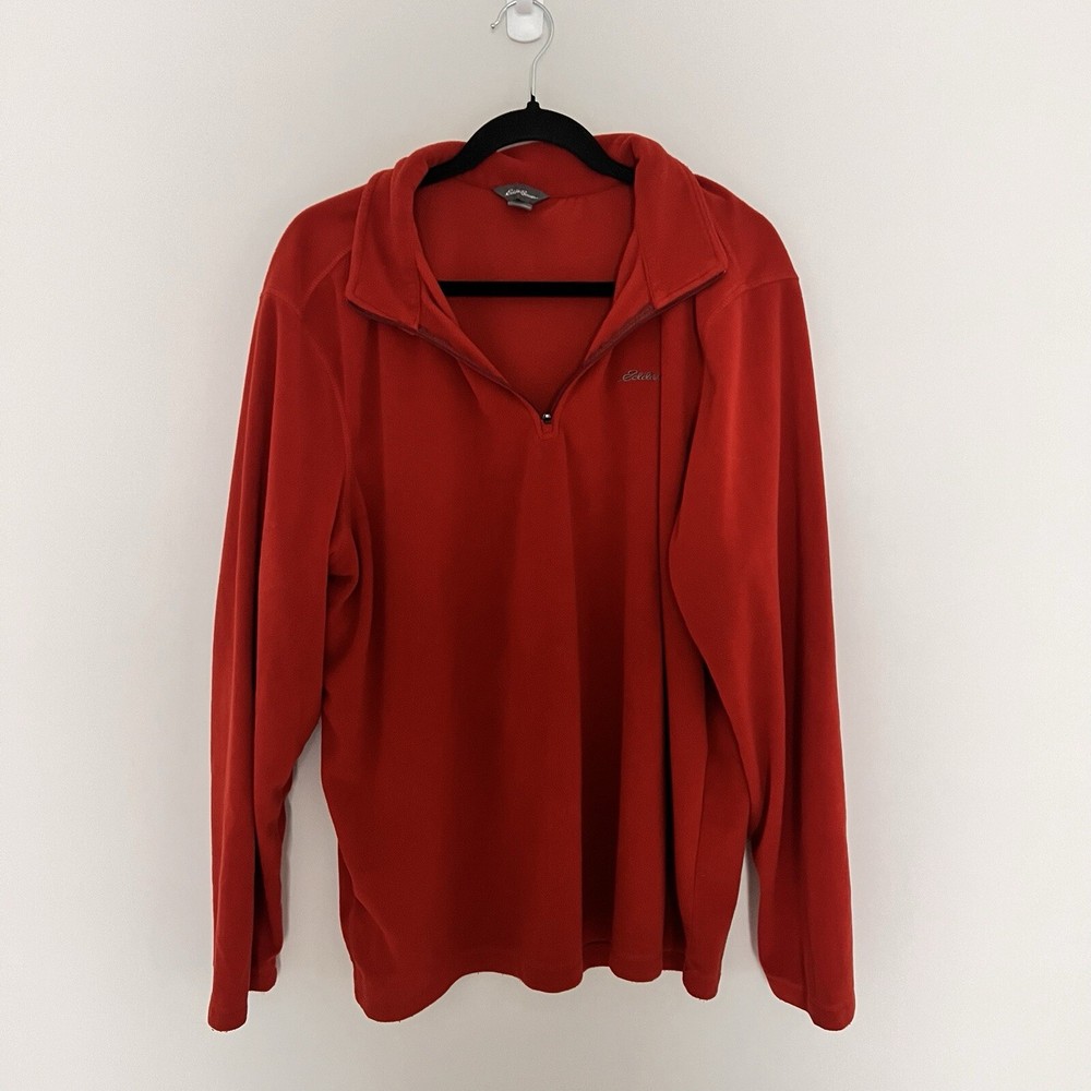 Elevate your winter, fall, or spring wardrobe with this stylish Eddie Bauer men's jacket. Crafted from high-quality polyester fleece, this mid-length jacket features a solid burnt orange color and a 1/4 zip closure. The jacket is perfect for travel or casual occasions, and its regular fit and point collar style make it a versatile addition to any outfit. The jacket also boasts a zipper accent, adding a touch of style to an already fashionable piece. With its XL size, this jacket is perfect for men who want to stay comfortable and stylish during the colder seasons. Made in Bangladesh, this jacket is a must-have for any man who wants to stay warm and fashionable.