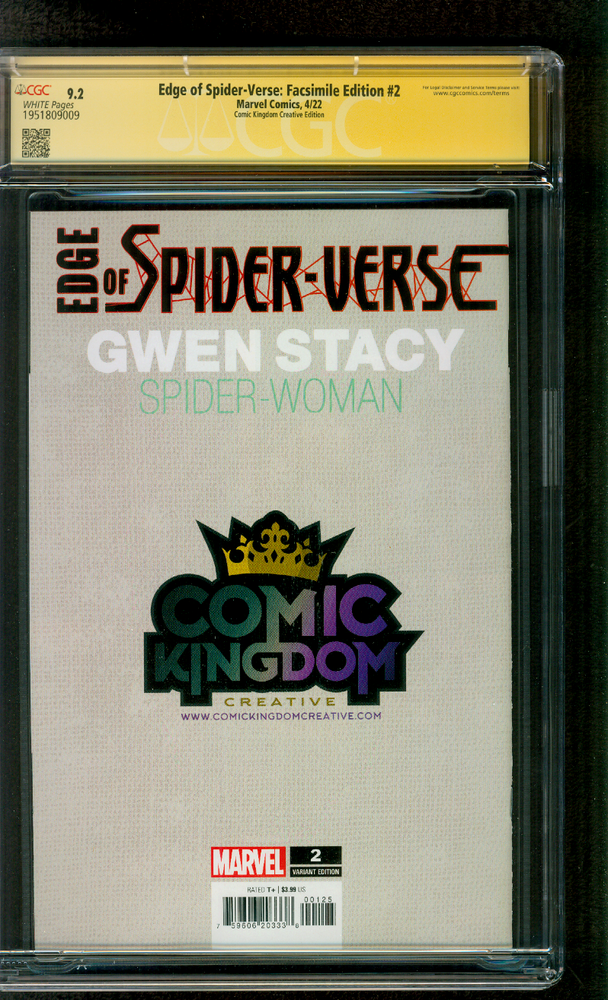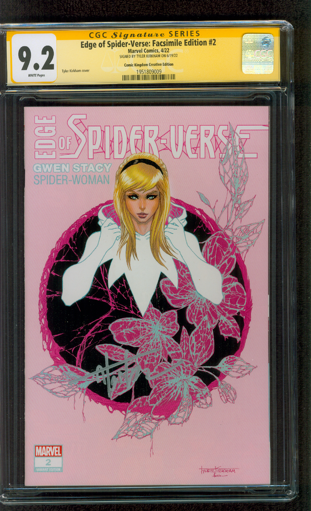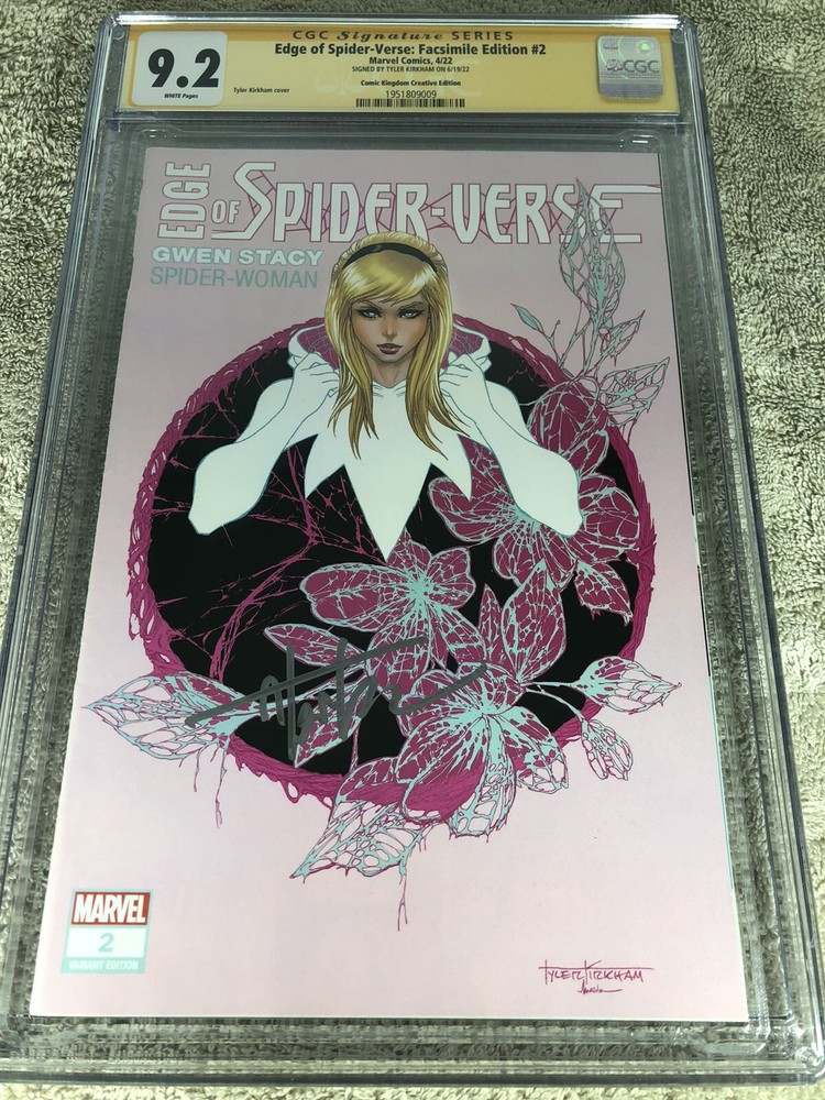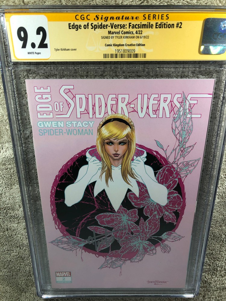 From the pages of Spider-Man: Edge of Spider-Verse #2 ~ Facsimile Edition - Exclusive Comic Kingdom Creative Edition Variant Cover ~ art by Comics Master : Tyler Kirkham!! CGC Signature Series 9.2 by Marvel Comics from 2022! Edge of Spider-Verse #2 ~ Facsimile Edition classic cool Exclusive Comic Kingdom Creative Edition Variant!! Exclusive Tyler Kirkham signed cover! CGC Signature Series ~ Art by Comic legend: Tyler Kirkham!! With Exclusive Edge of Spider-Verse #2 Facsimile Ed Kirkham Variant cover by Comic Legend: Tyler Kirkham!!! With Exclusive Comic Kingdom Creative Variant Cover!! CGC Signature 9.6 Certification #1951809009 - White Pages - Jason Latour story & classic interior art!!!! Case is in new crack-free Condition! Priority Mail Shipping in US is 12.95!!!! Canada shipping is thu eBay Global Shipping Program (GSP). Payment is due within 48 hours after clicking BIN. All overseas shipping is via eBay GSP mail. Thanks for looking.