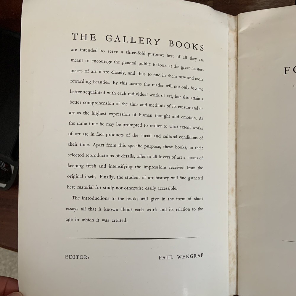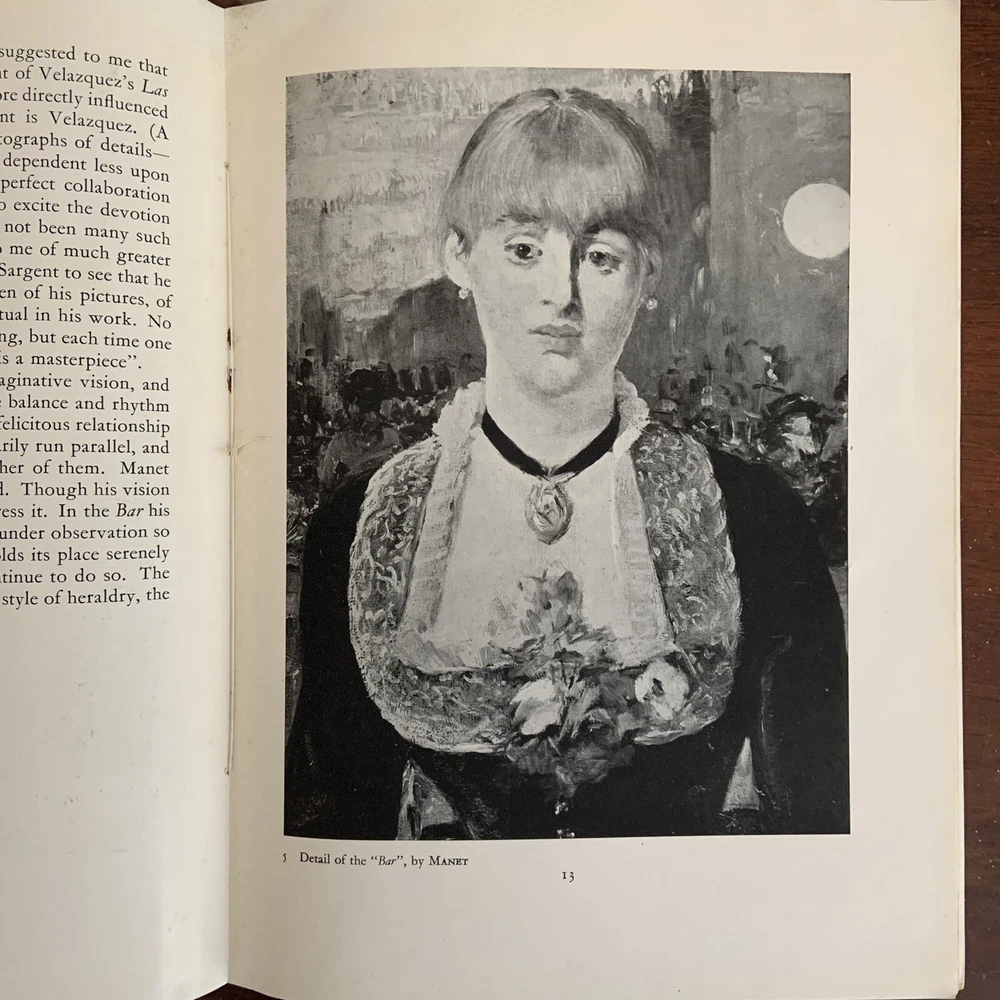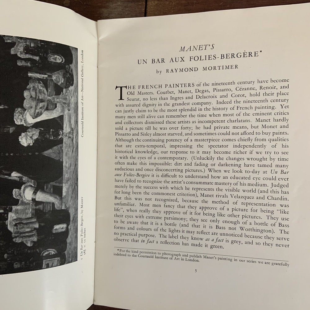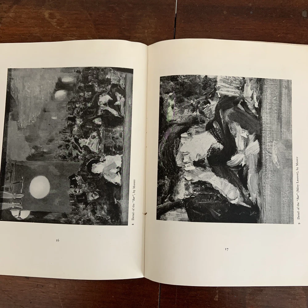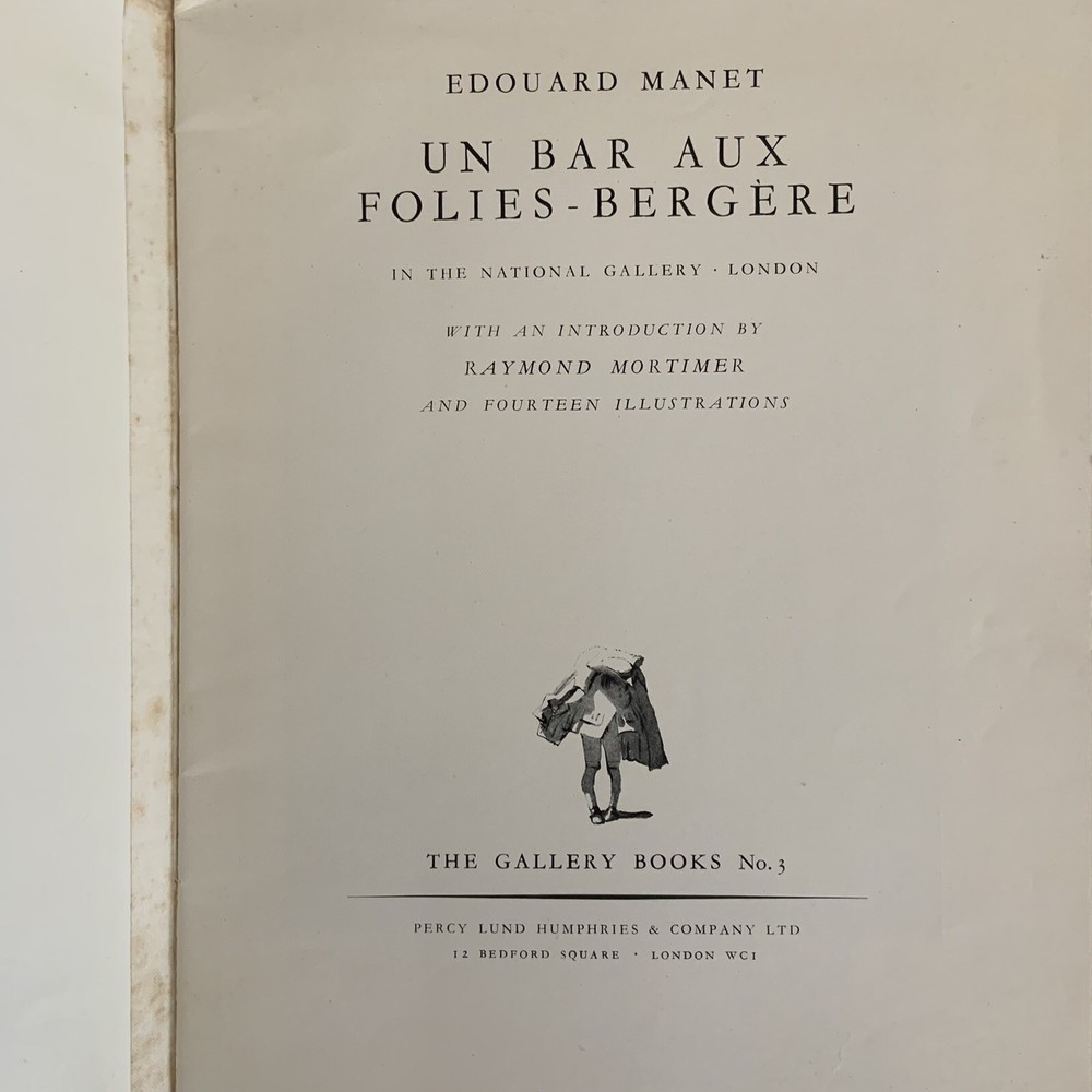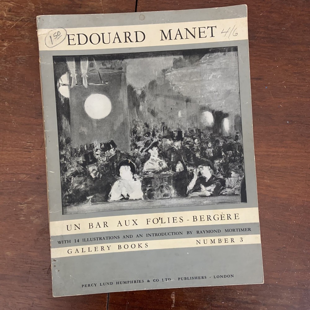 Edouard Manet Un Bar Aux Folies Bergere Gallery Books Number 3 Percy Lund Humphries & Co Ltd with 14 illustrations and an introduction by Raymond Mortimer Edited by Paul Wengraf Not clear on the date this was printed, the assumption is in the mid 1940s or more modern. Mid Century Modern Art ephemera Pre Owned in overall good condition...pencil at the top left corner cover, and mild wear and discoloration on the front and back covers. Thank you for looking!